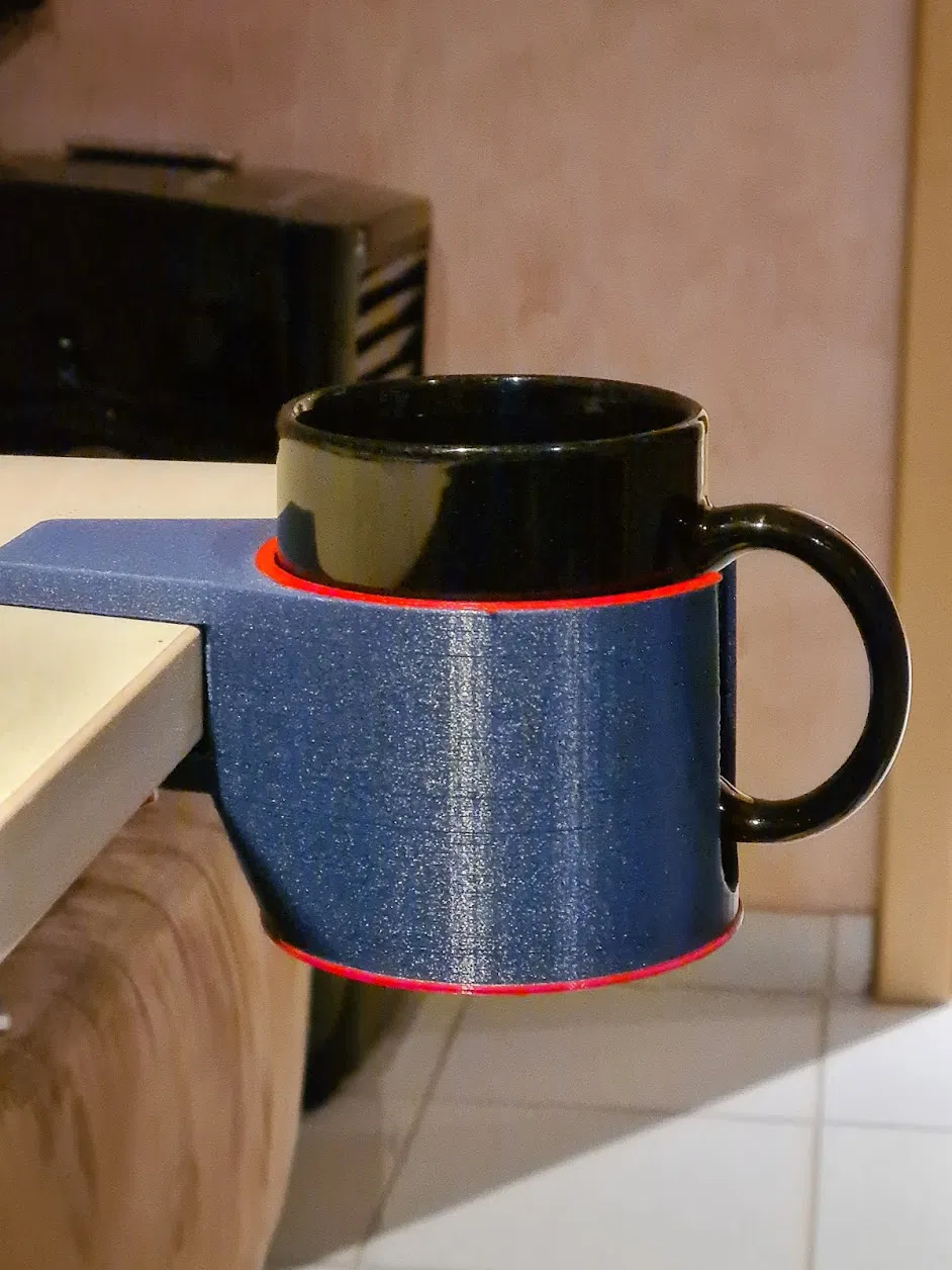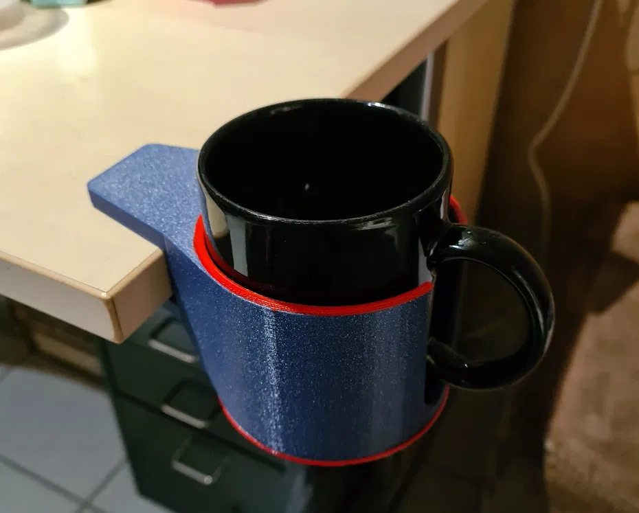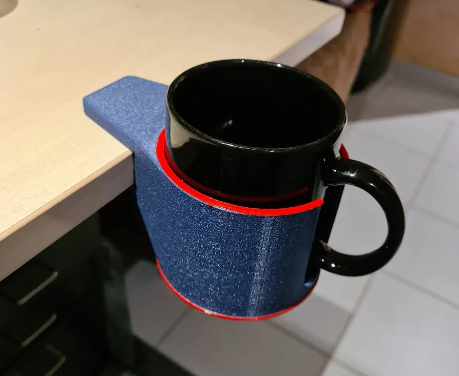 Giá đỡ ly cho văn phòng, kẹp vào bàn làm việc. Món quà Giáng sinh ý nghĩa cho anh em. Hướng dẫn in chi tiết với màu sắc xen kẽ và yêu cầu support. Đừng quên thử ứng dụng GCodePrintr để điều khiển máy in từ xa nhé!