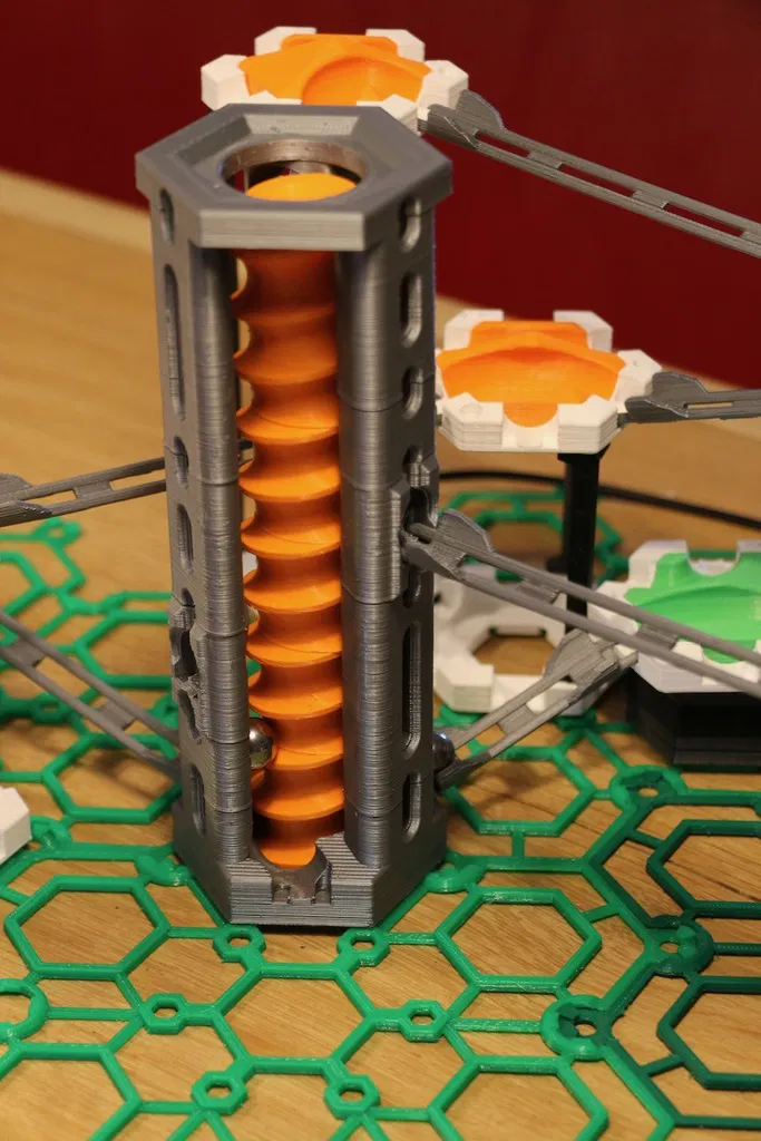 Cảm ơn đóng góp của Lucas Moraes Abarca, tôi đã tạo ra một bộ phận tương tự như lối ra nhưng thực sự là một lối vào. Vì vậy, nếu bạn sử dụng bộ phận này cao hơn lối ra, nó có thể đưa bi trở lại thang máy và cho chúng thoát ra qua lối ra ở mức cao hơn. Do đó, bạn giờ đây có thể có các lối ra có chiều cao khác nhau nhưng cũng có các lối vào có chiều cao khác nhau! Cảm ơn Lucas!