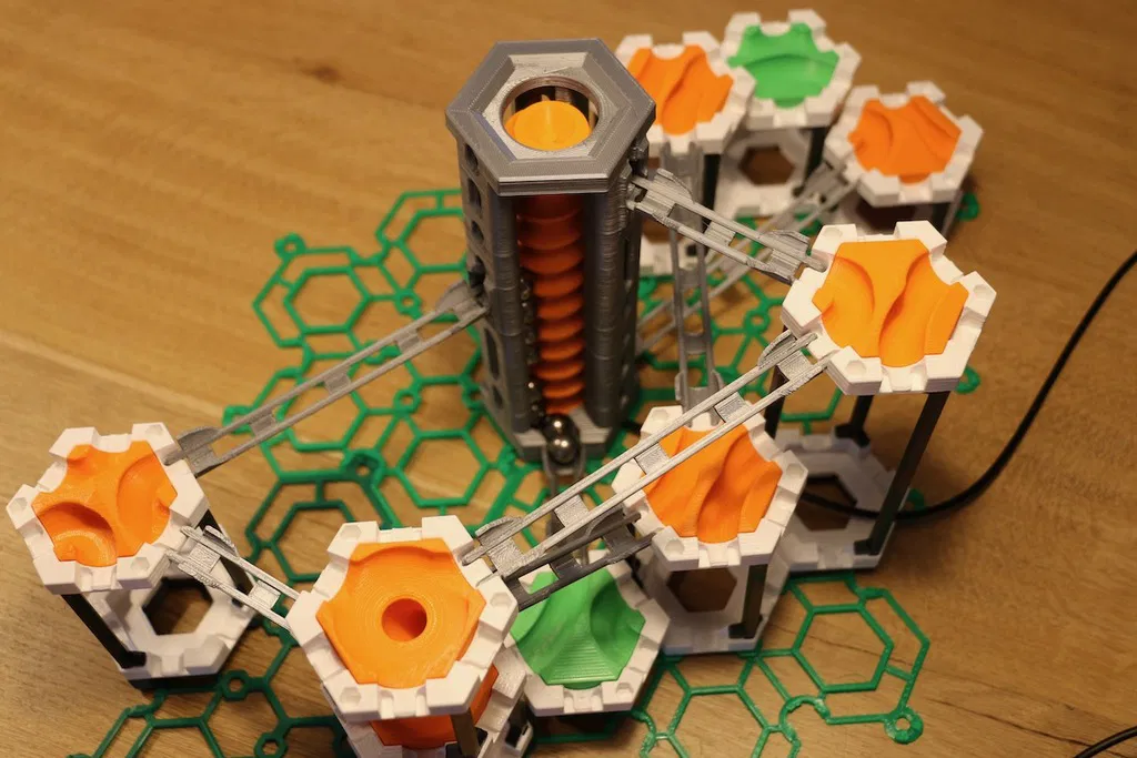 Trong khi mẫu trước đó có thể được lắp vào gạch sáu lối ra cơ bản của tôi, là nền tảng cho tất cả các thiết kế thành phần bi của tôi, phiên bản này là phiên bản độc lập với đế riêng. (Mẫu trước đó gặp sự cố khi in bộ phận kết nối với gạch sáu lối ra, xem bình luận).
