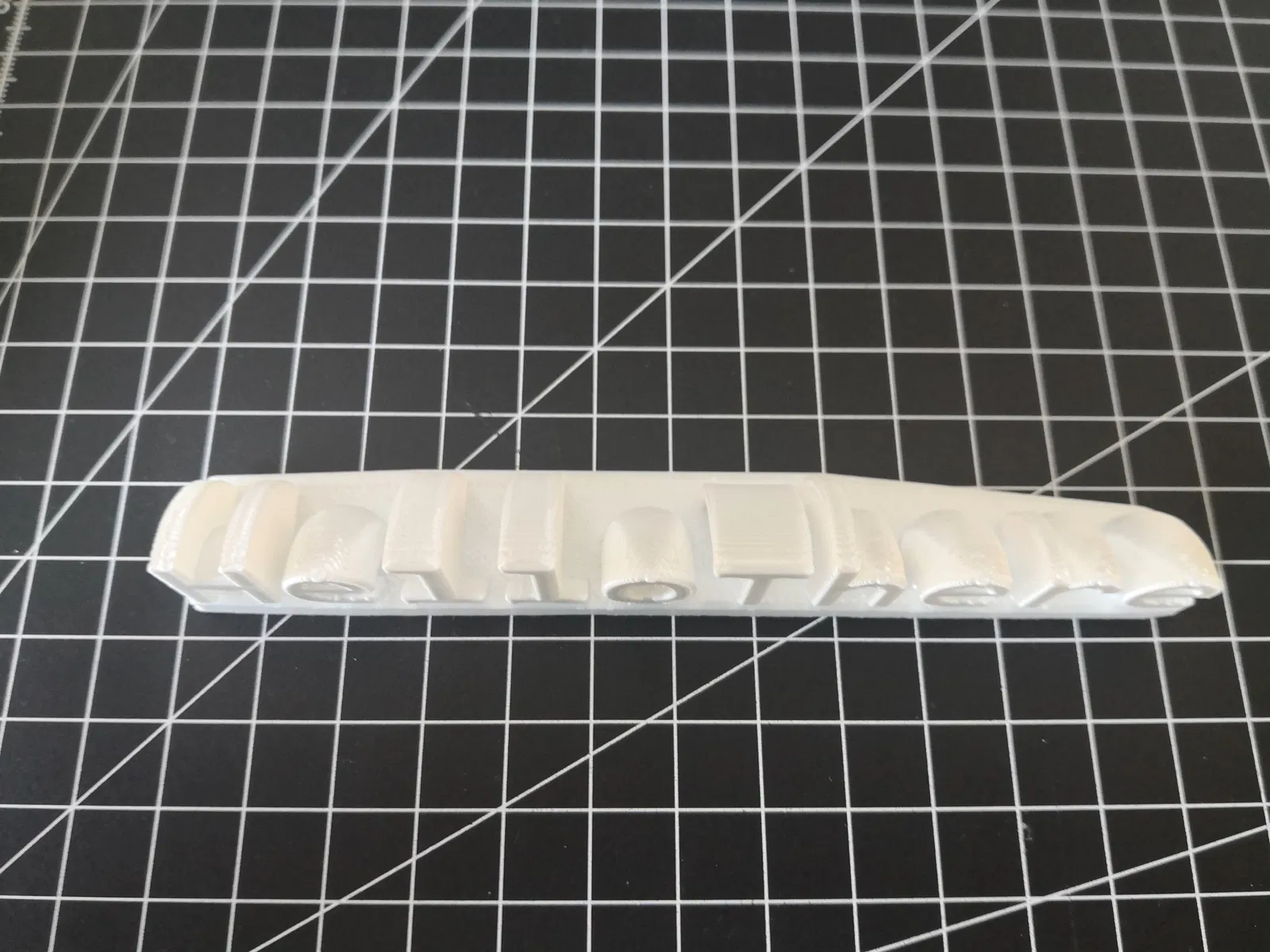 Tôi đã viết một chương trình openscad để tạo biển tên này. Bạn có thể tự tạo với trình tùy chỉnh. Tải openscad, tùy chỉnh chữ, font, kích thước, chiều cao, góc quay và đế, sau đó xuất STL để in.