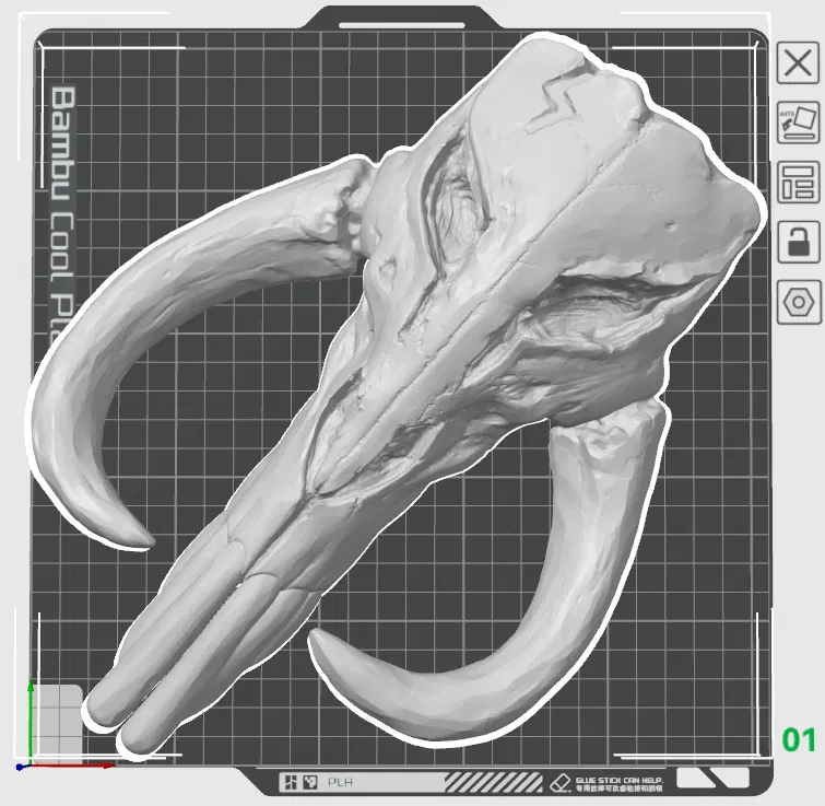 Mô hình Đầu lâu Mythosaur từ Star Wars, được in trên máy Bambu Lab X1C. Tối ưu hóa cho bàn in 256x256mm, không cần hỗ trợ với chiều cao lớp 0.08mm. Lưu ý về hỗ trợ nếu dùng chiều cao lớp 0.2mm.