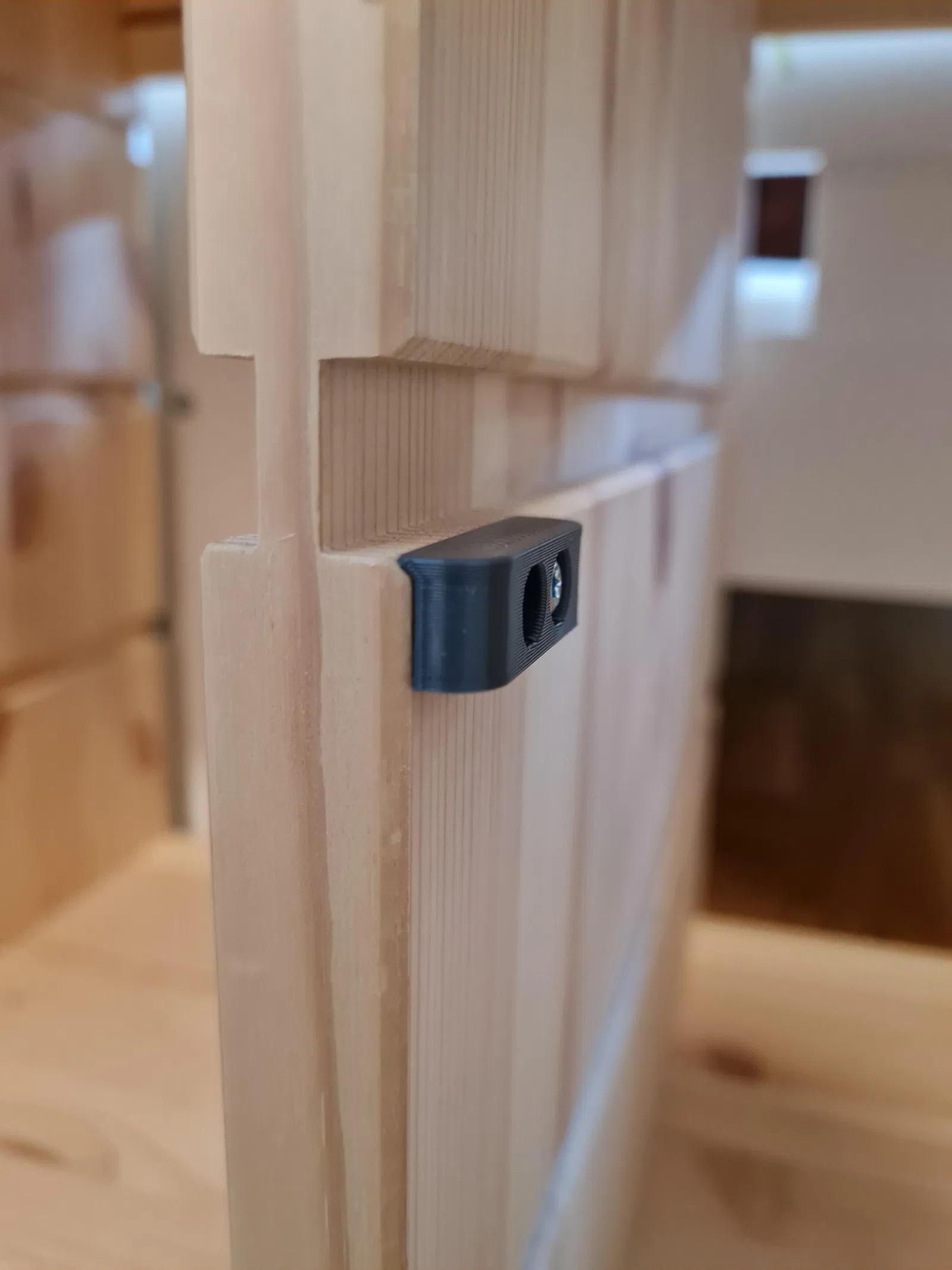 Có hai lỗ để bắt vít, nhưng tui chỉ dùng một con vít cho mỗi cái đế đỡ thôi. Điều này cho phép sử dụng các lỗ xen kẽ cho các mặt đối diện của tủ và các con vít không bị cạ vào nhau.