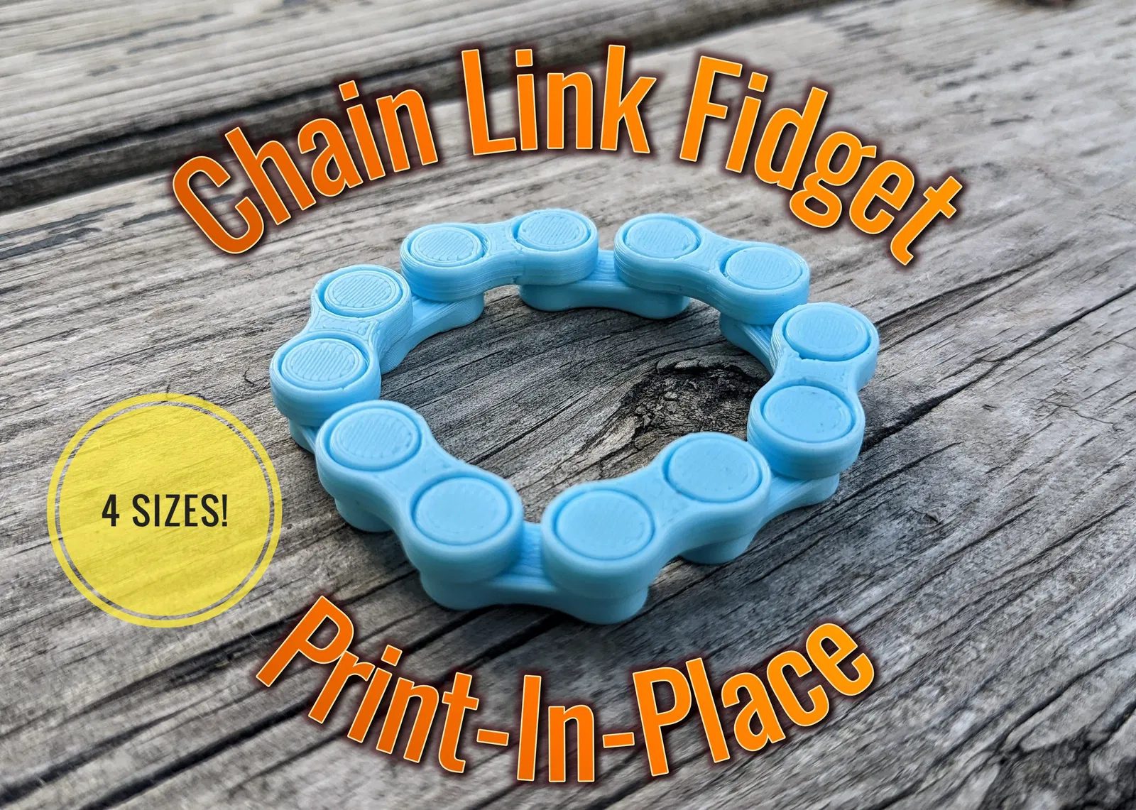 Đồ chơi fidget mắt xích in liền - có sẵn với 4 kích cỡ. Bạn có thể tùy chỉnh hình dạng theo ý thích. Các kích cỡ nhỏ là bản in nhanh, hoàn hảo cho người mới bắt đầu. Bộ sưu tập bao gồm các kích cỡ từ Nhỏ đến XL.