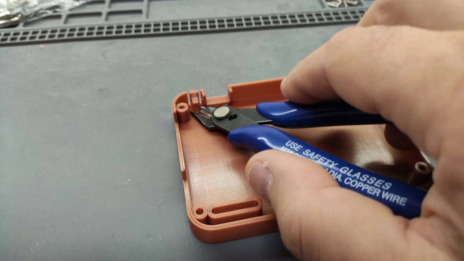 Phần hỗ trợ nút bấm cần được cắt như trong ảnh.