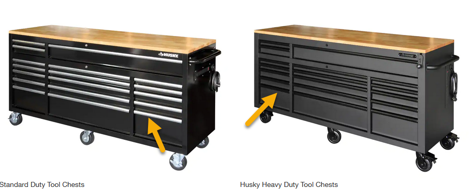 Tui đã tạo ra hai phiên bản để gắn thêm khay đựng nhãn có thể tháo rời cho các hộp đồ nghề Husky tiêu chuẩn và loại nặng của bạn. Theo kinh nghiệm của tui, phần nhôm định hình (extrusion) dùng cho các mẫu tiêu chuẩn và loại nặng có những khác biệt nhỏ - chúng không giống nhau. Theo những gì tui tìm hiểu được, nhìn chung, dấu hiệu nhận biết là các hộp đồ nghề tiêu chuẩn có phần nhôm màu bạc, trong khi các mẫu loại nặng có phần nhôm màu đen. Thiết kế này không ảnh hưởng đến việc sử dụng ngăn kéo.
