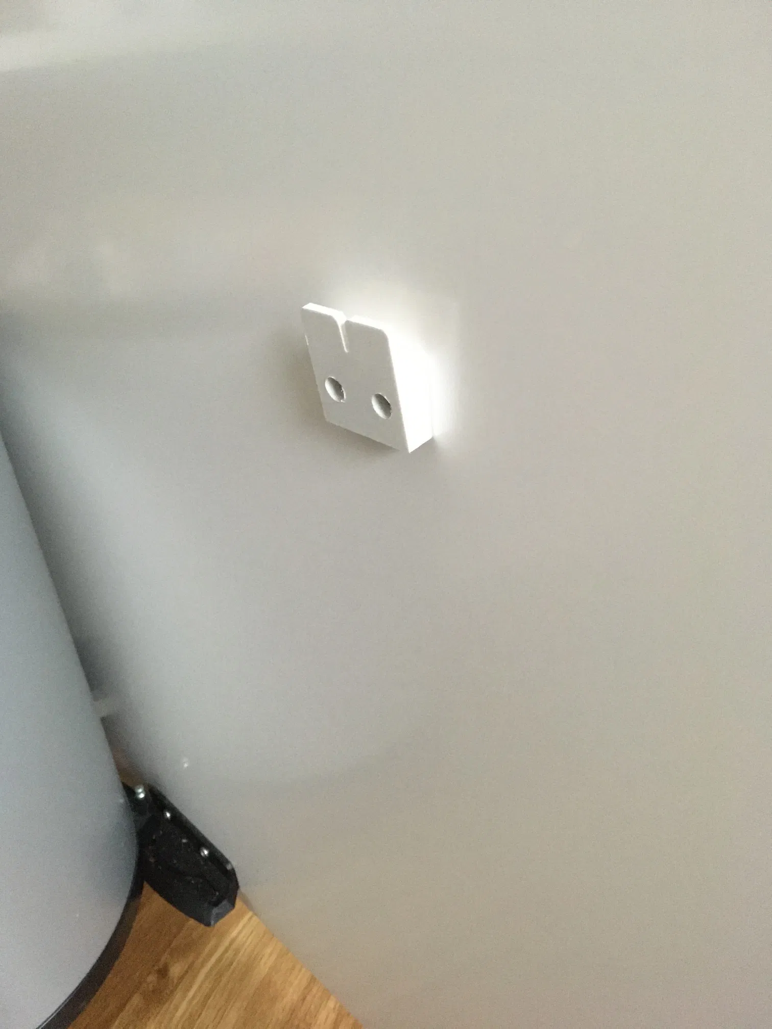 Đây là giá treo cửa dành cho thùng rác Ikea Hallbar nhỏ (3 lít). Tôi đã thiết kế nó hơi nghiêng để đáy thùng chạm vào cửa.