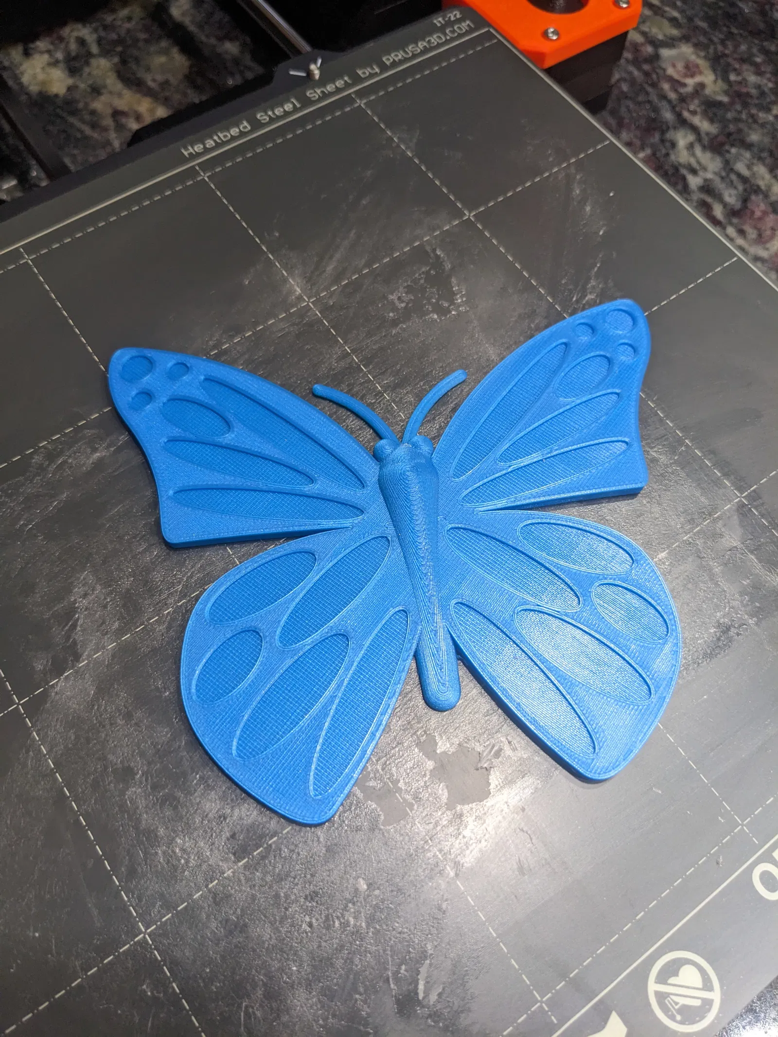 Mô hình bướm đơn giản với các túi sâu 1mm để thể hiện (và dễ dàng sơn) các hoa văn trên cánh của bướm monarch. Ăng-ten hơi dày để tránh bị gãy.