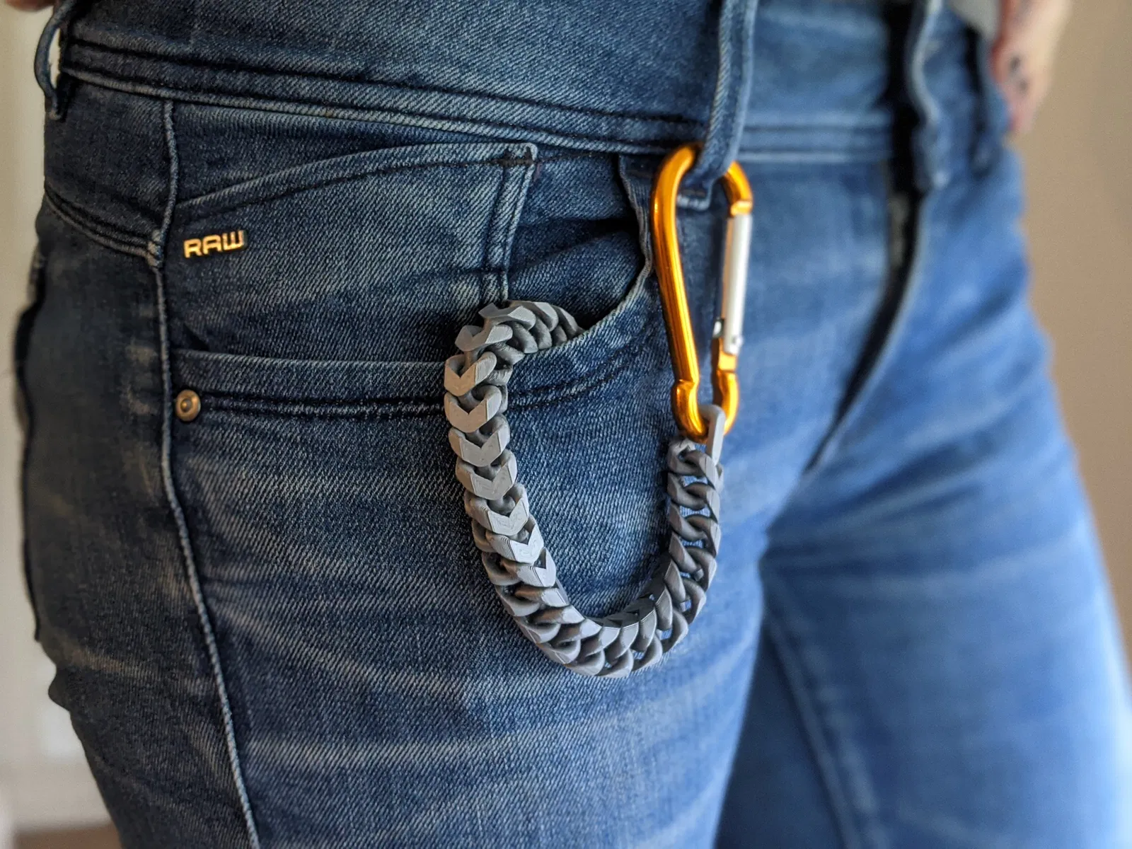 Lúc đó tôi chưa sử dụng Fusion 360, vì vậy mô hình đầu tiên được tạo trong Cinema 4D, và nó hầu như không linh hoạt sau khi in. Việc tinh chỉnh dung sai giữa các mắt xích và in mẫu thử đã khiến tôi bận rộn trong một thời gian. Nhưng quá trình tạo mẫu này thực sự trở nên nhanh chóng khi tôi chuyển sang mô hình hóa tham số (trong trường hợp của tôi là Fusion 360). Và phải mất một thời gian để làm quen với phần mềm mới trước khi tôi có thể mô hình hóa chiếc móc khóa này trong đó.