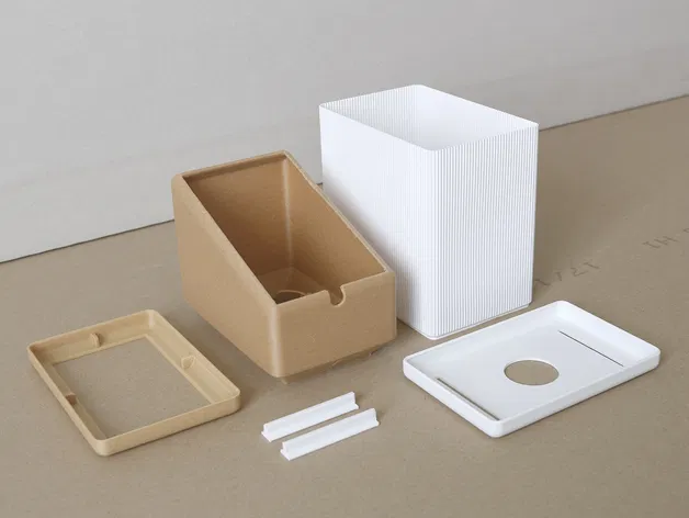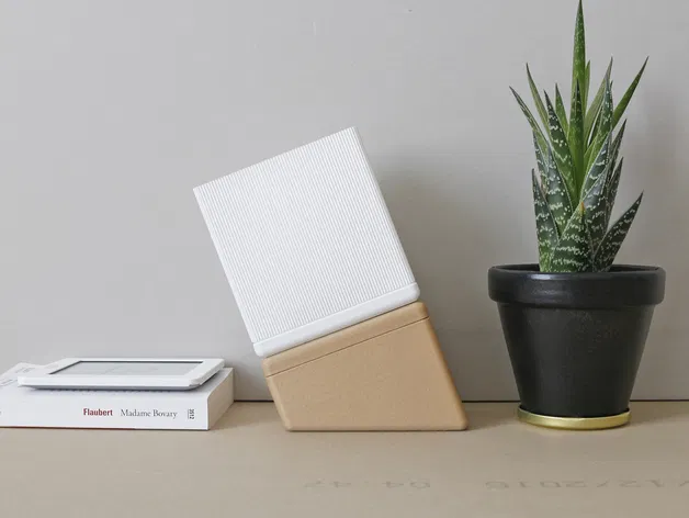 Thiết kế tối giản này không cần vật liệu hỗ trợ để in và có thể kết hợp với các vật liệu độc đáo để có kết quả cao cấp. Các mô hình đã được in 3D với Colorfabb Woodfill (thân đèn) và White nGen (chụp đèn).