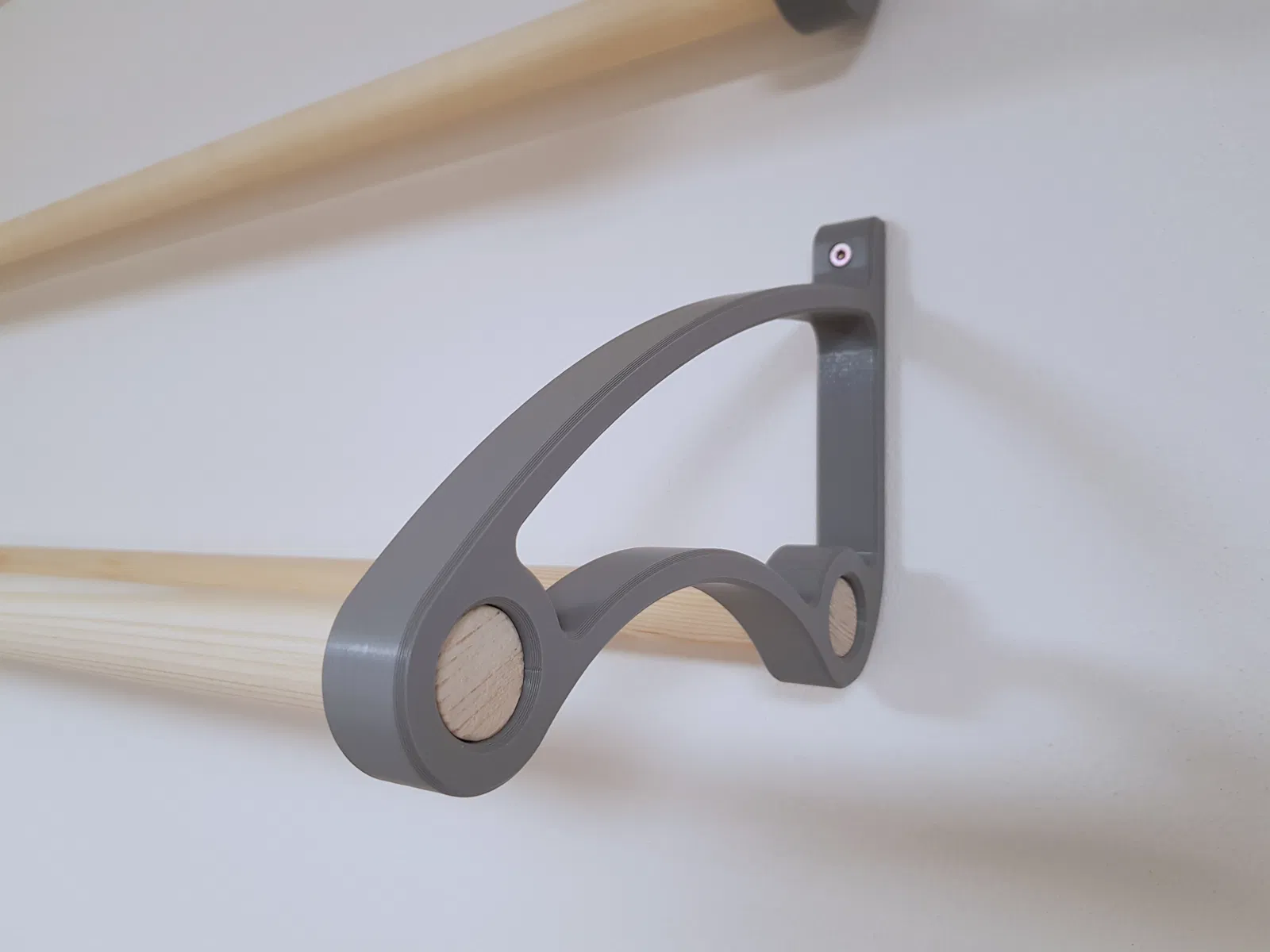 Giá đỡ (kệ) đựng sợi filament với thanh tròn 28mm. Đây là kích thước phổ biến của các thanh gỗ, ống nhựa và ống kim loại bạn có thể mua ở chợ đồ thủ công. Có lỗ gắn 5mm cho vít 4.5mm.
