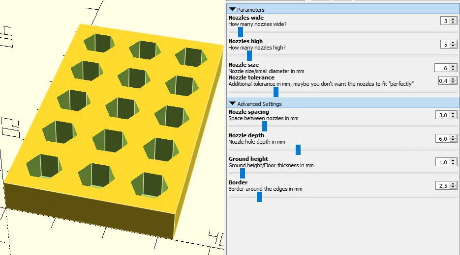 Dễ dàng điều chỉnh - các giá trị mặc định dành cho MK8 6mm, chỉ cần đặt số lượng đầu phun mỗi hàng và mỗi cột, là xong.