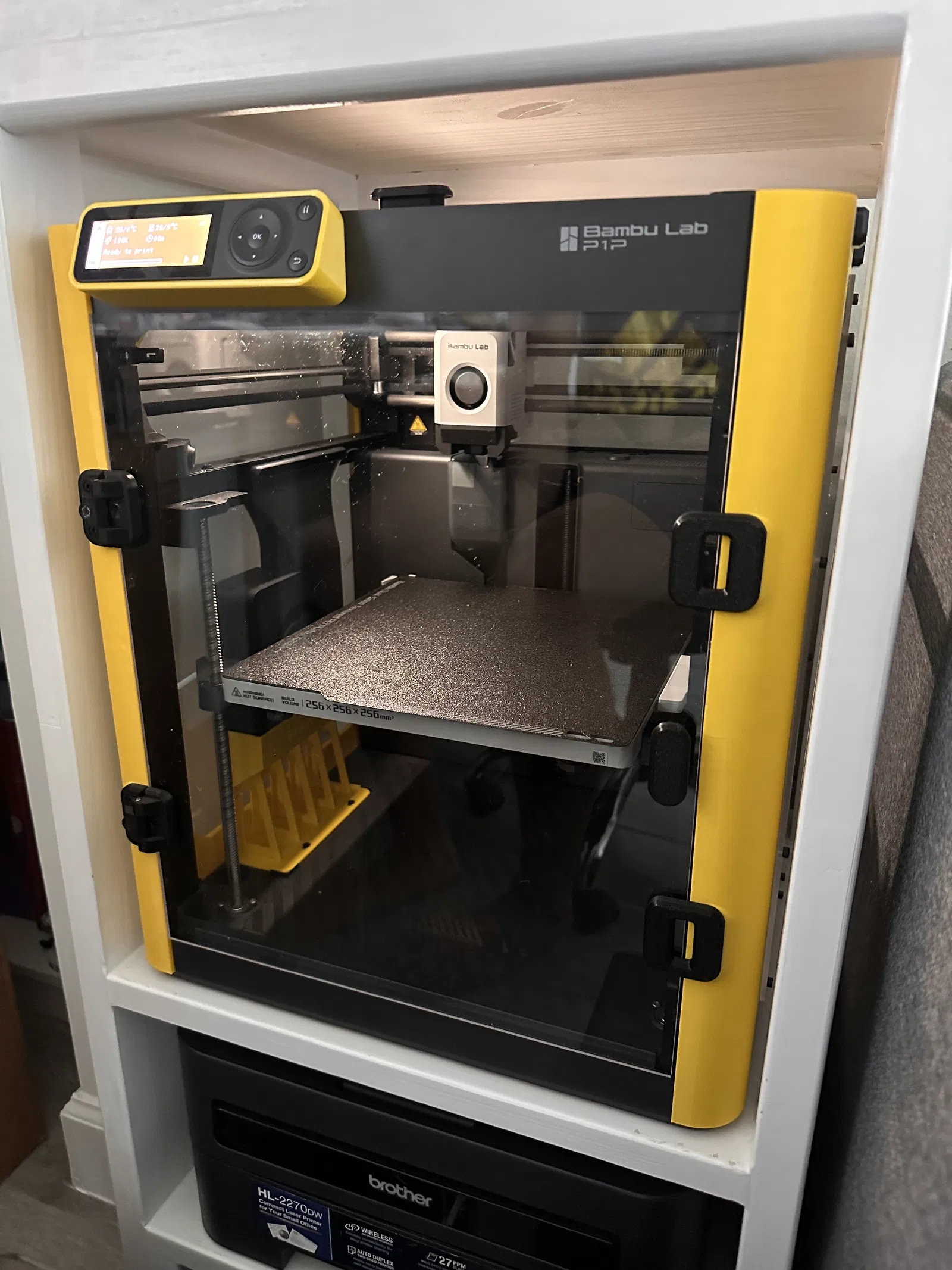 Khung/mặt trước/bộ bảo vệ màn hình tối giản cho Bambu Lab P1P. Chỉnh sửa từ BU Faceplate của 3D Sourcerer. Phiên bản cập nhật bổ sung khả năng tương thích với vỏ ARC, giải quyết vấn đề kẹt cửa trước.