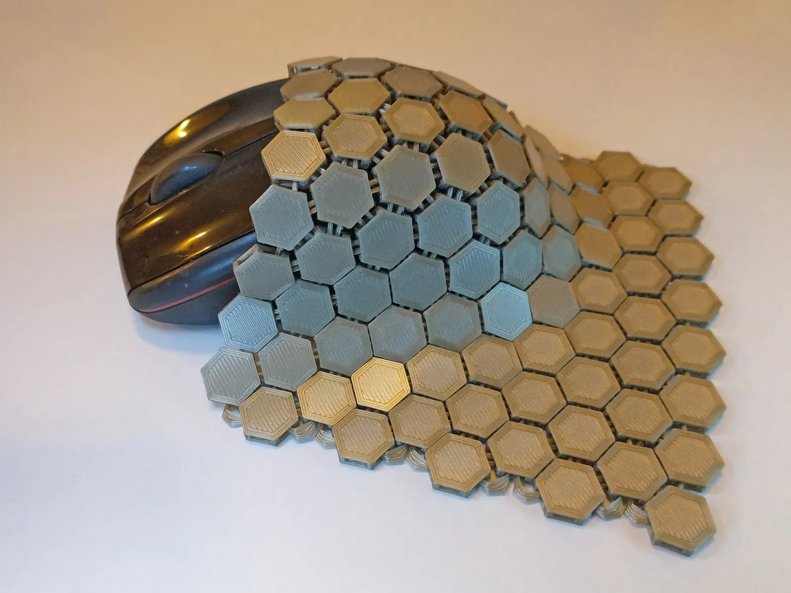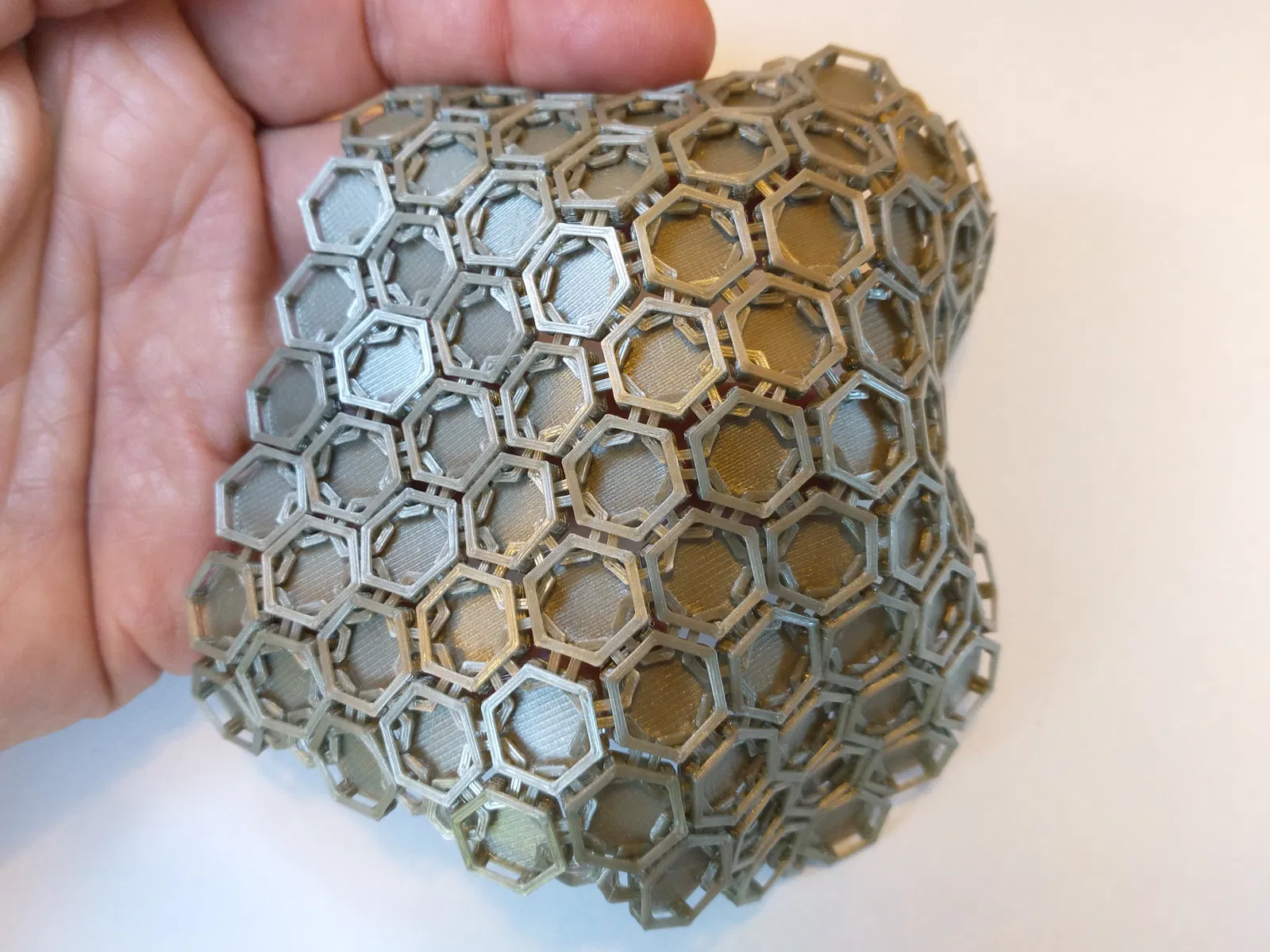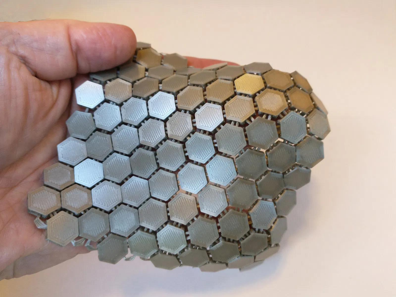 Vải lục giác in nhanh, mỏng, mềm mại và chắc chắn. Thiết kế mới ít rắc rối hơn, in nhanh hơn với các ô hình lục giác và vòng lồng vào nhau riêng biệt. Quá trình tách các bộ phận rất thú vị.