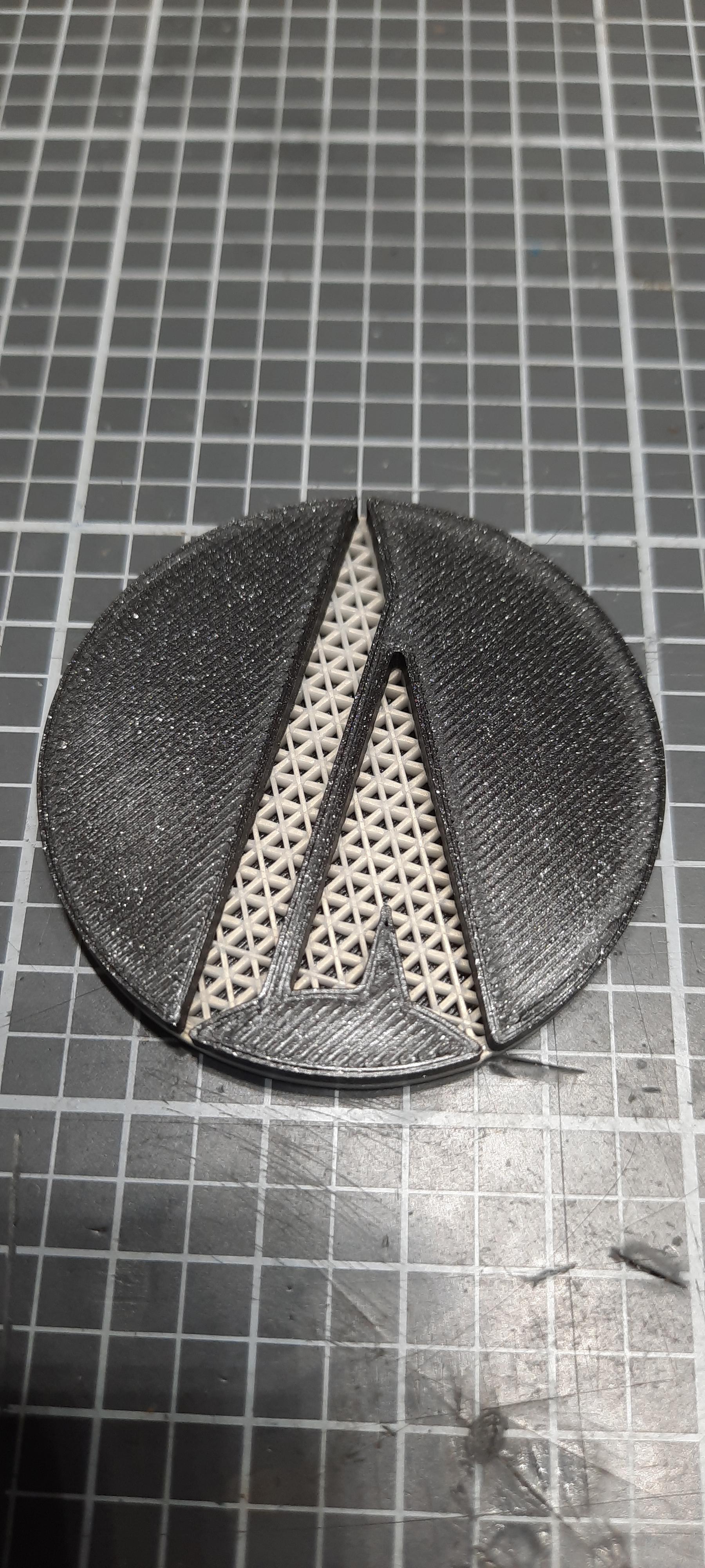 Đây là logo-coin Bps.space được vẽ lại bằng Fusion 360 và in với 2 màu filament trên Prusa Mini. Hướng dẫn thay đổi filament (M600) để có hiệu ứng đẹp mắt với chiều cao lớp 0.2mm.