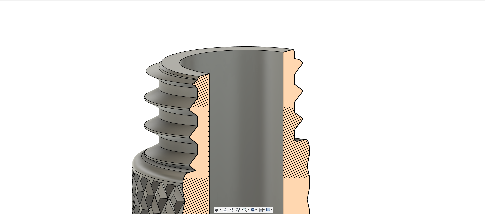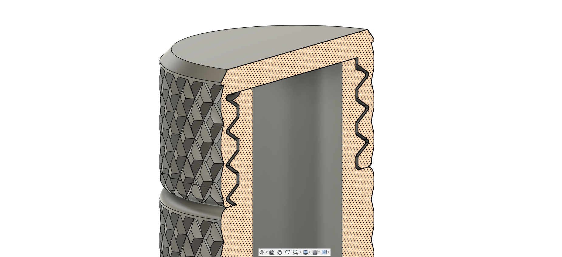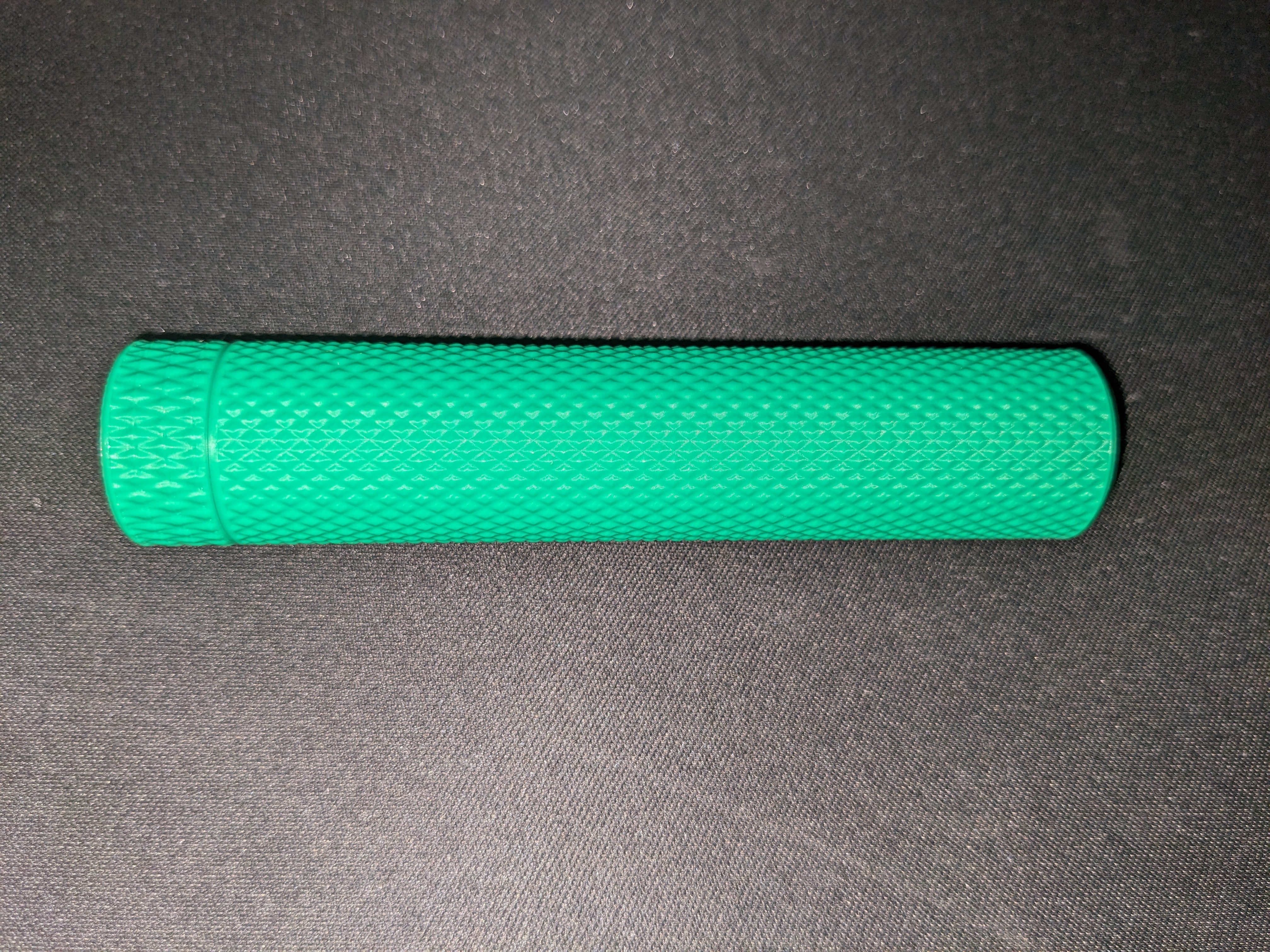 Hộp vặn vít với chiều cao 110mm (cũng có các kích thước 30, 60 và 90mm). Đường kính ngoài 24mm, đường kính trong 14mm. Bề mặt vành răng giúp cầm nắm tốt hơn. Hộp này có cùng họa tiết vành răng trên thân và nắp, với viền vát nhẹ ở đáy.
