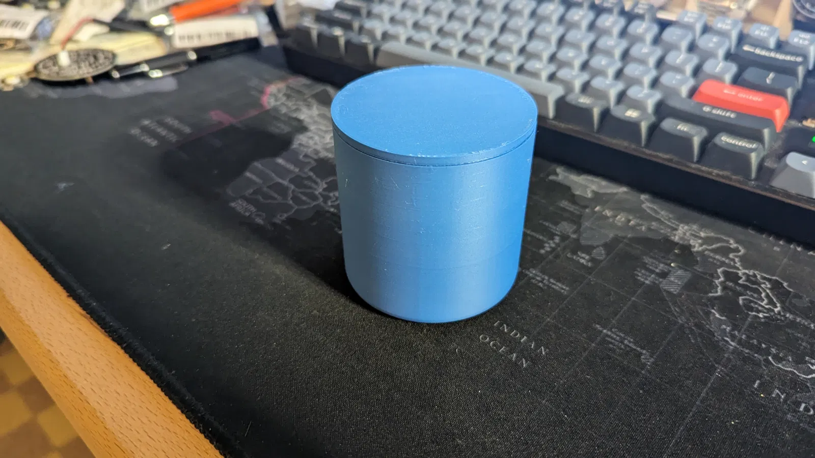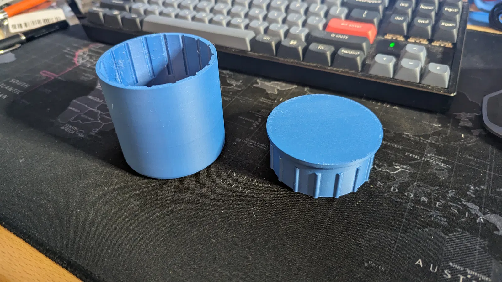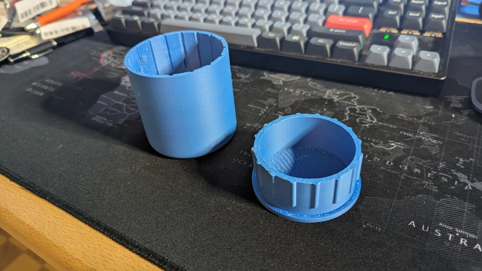 Cả cốc và nắp đều có thể in mà không cần vật liệu hỗ trợ nếu in đúng hướng (cốc đặt ngửa, nắp đặt úp).