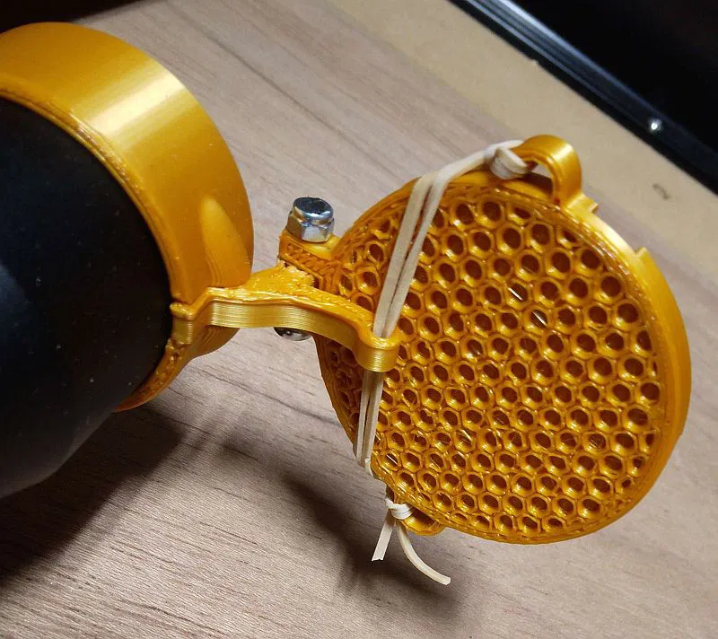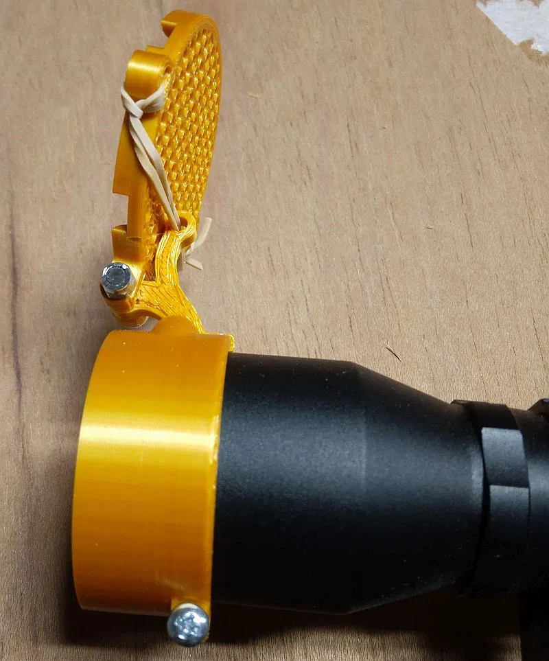Một thiết kế nắp chụp ống ngắm súng trường khác với cơ chế đóng mở bằng dây thun độc đáo, tạo tiếng "tách" đã tai. Đường kính trong 1.54in, có sẵn trên OnShape.