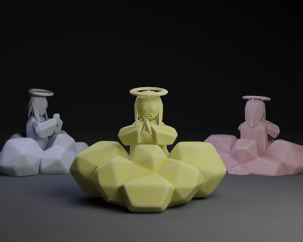 Mô hình 3D Chúa Jesus trong South Park, đang chắp tay cầu nguyện trên đám mây. Thích hợp để trang trí xe hơi hoặc làm vật phẩm sưu tầm.