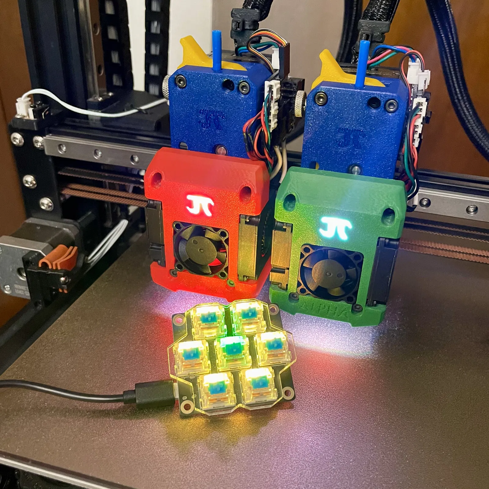 Tôi đã in những keycap này trên máy in IDEX, nhưng bạn có thể dễ dàng đổi filament để in đa màu với máy in một trục đùn.