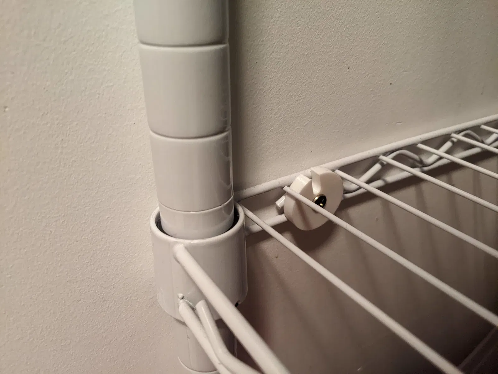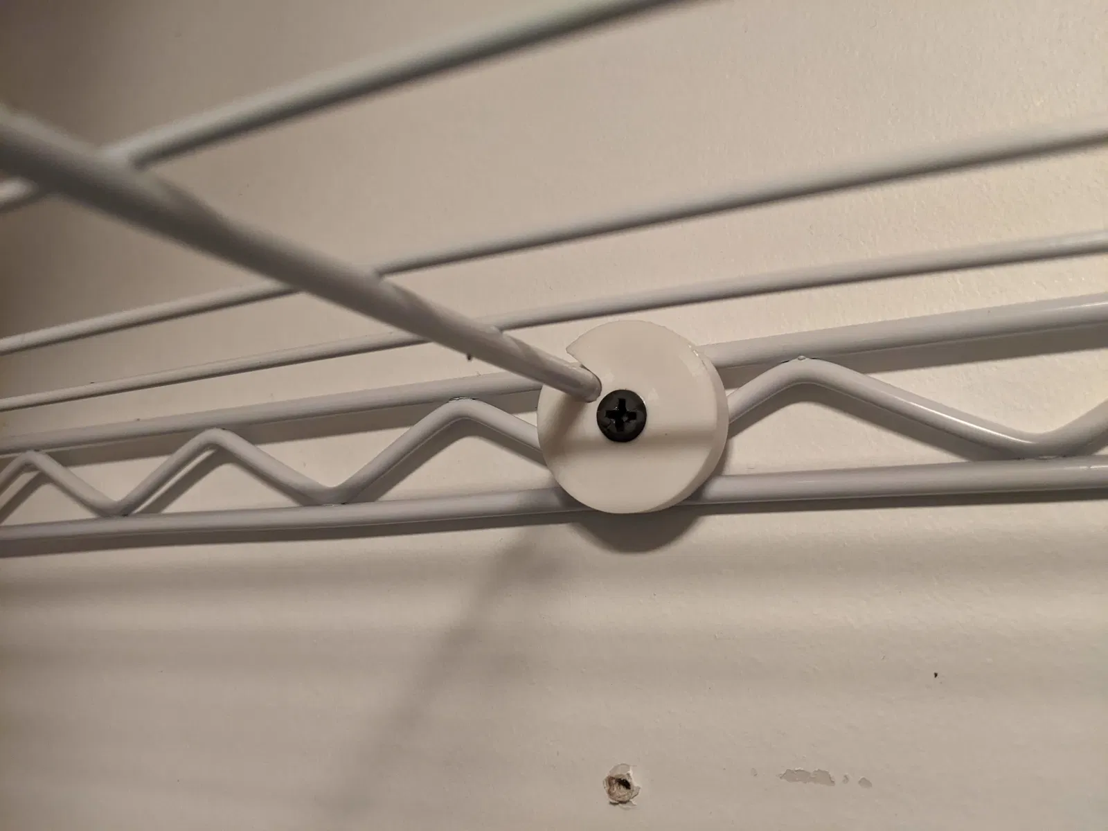 Cho phép bạn vặn các kệ dây vào tường để neo giữ an toàn. Có một khe hở để cho phép thanh đỡ kệ đi qua.