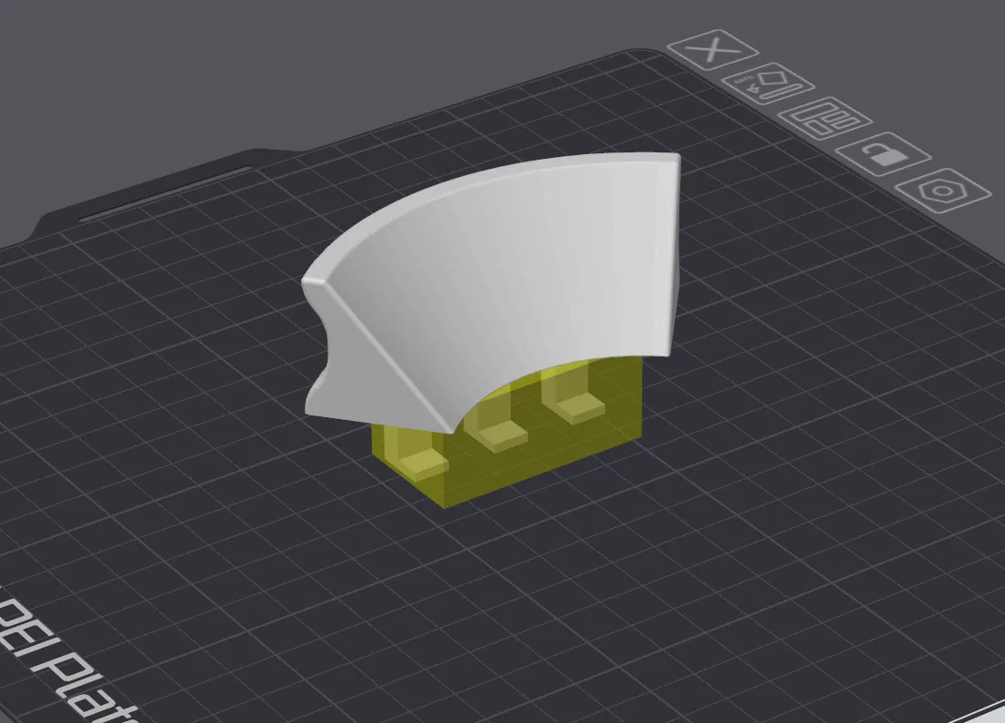 In với các móc hướng xuống, bật hỗ trợ và sử dụng modifier để tăng infill cho phần móc. Tuy nhiên, các móc vẫn dễ bị gãy và mẫu này cần được cải thiện thêm.