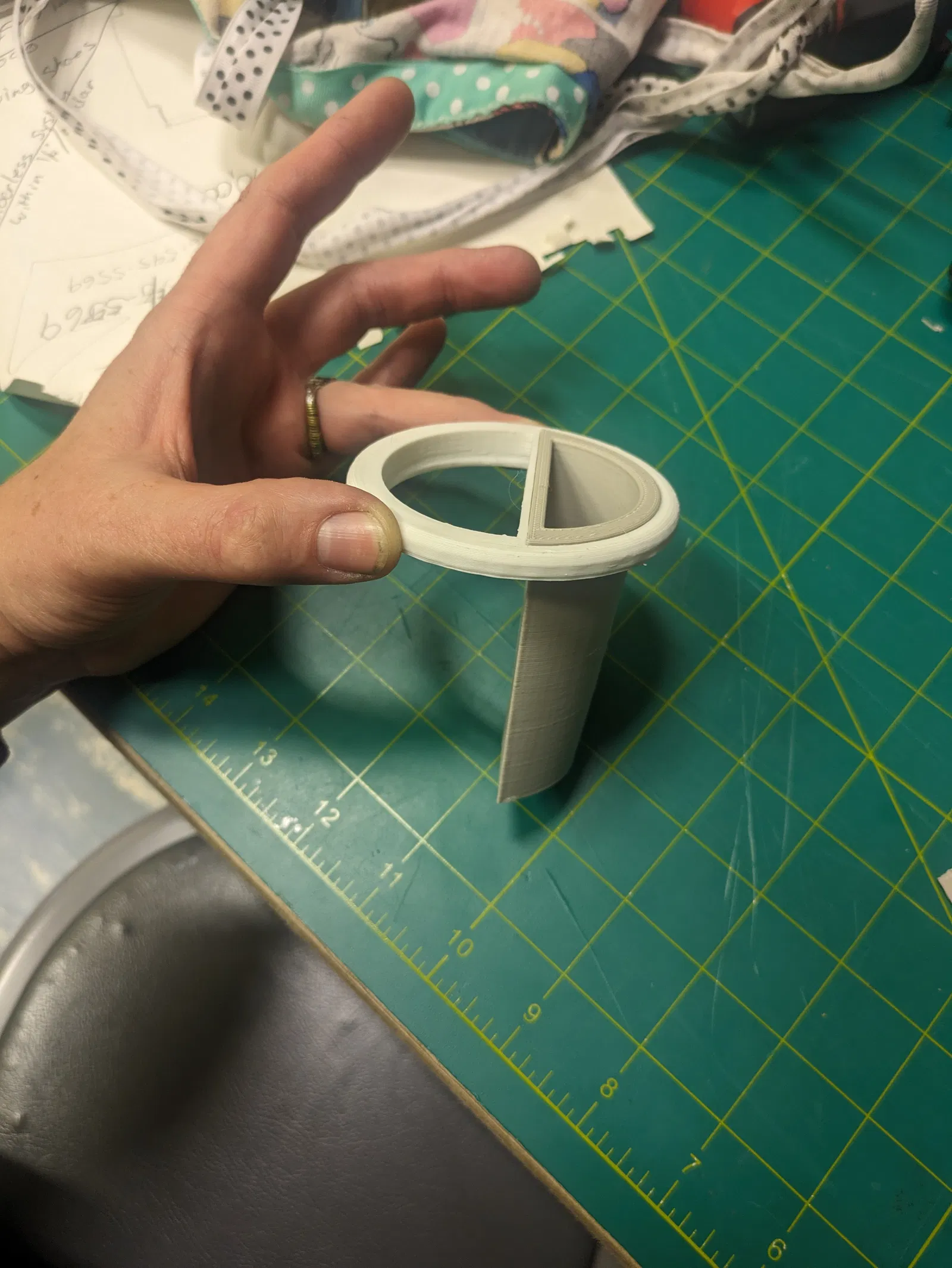 Tôi đã tạo ra này cho một sợi dây Bernina để phù hợp qua. Các lỗ cắt của tôi là 2,5 inch trong đường kính, hãy scale theo. Đây được in với ít hỗ trợ càng ít, tôi chỉ thêm hỗ trợ cho rìa.