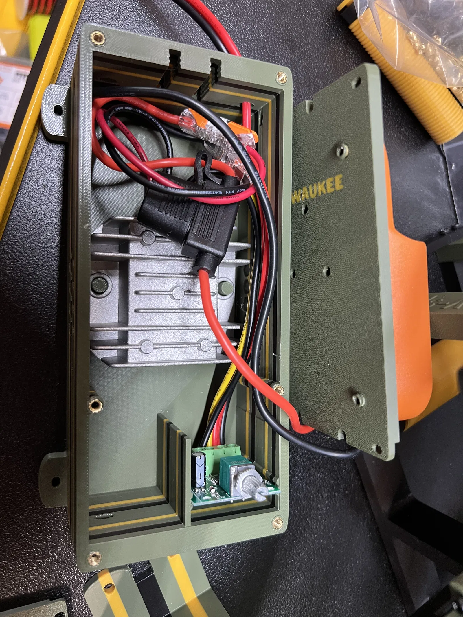 Mô hình này được tạo ra dựa trên một bộ phận vỏ động cơ mà tôi tìm thấy trên Maker World, nhưng thiết kế của hộp pin 18V và các nắp đậy đều là nguyên bản. Ý tưởng chính là tạo ra một nguồn điện di động cho V-Spooler của tôi, nhưng tôi cũng nghĩ rằng thiết kế này có thể được sử dụng bất cứ nơi nào cần nguồn điện 18V hạ áp với công suất có thể điều chỉnh cho động cơ.