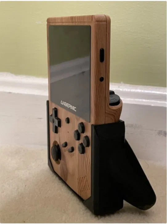 Tay cầm chơi game công thái học cho Anbernic RG351V. Thiết kế công thái học giúp chơi game thoải mái hơn. Lỗ ở dưới đáy cho phép bạn sạc hoặc cắm tai nghe mà không cần tháo tay cầm. Thiết kế bằng TinkerCad