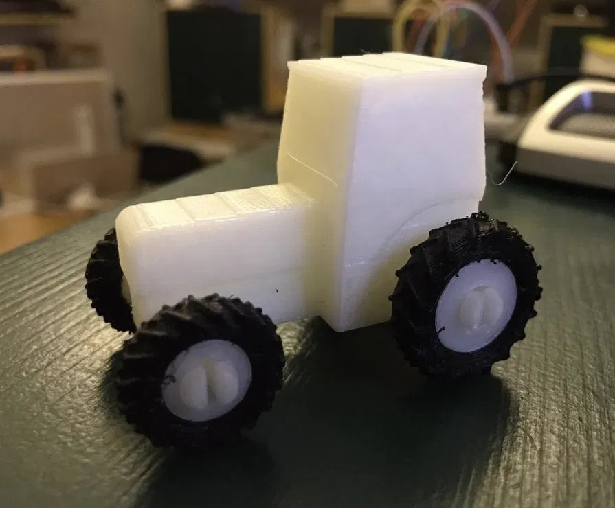 Mẫu máy kéo độc đáo, có thêm thiết kế bánh đôi cực chất. Bánh xe được chia nhỏ, cho phép in bằng nhựa dẻo (flex) chạy êm trên sàn cứng. Nhớ bôi trơn trục để tránh tiếng kêu khó chịu nhé!