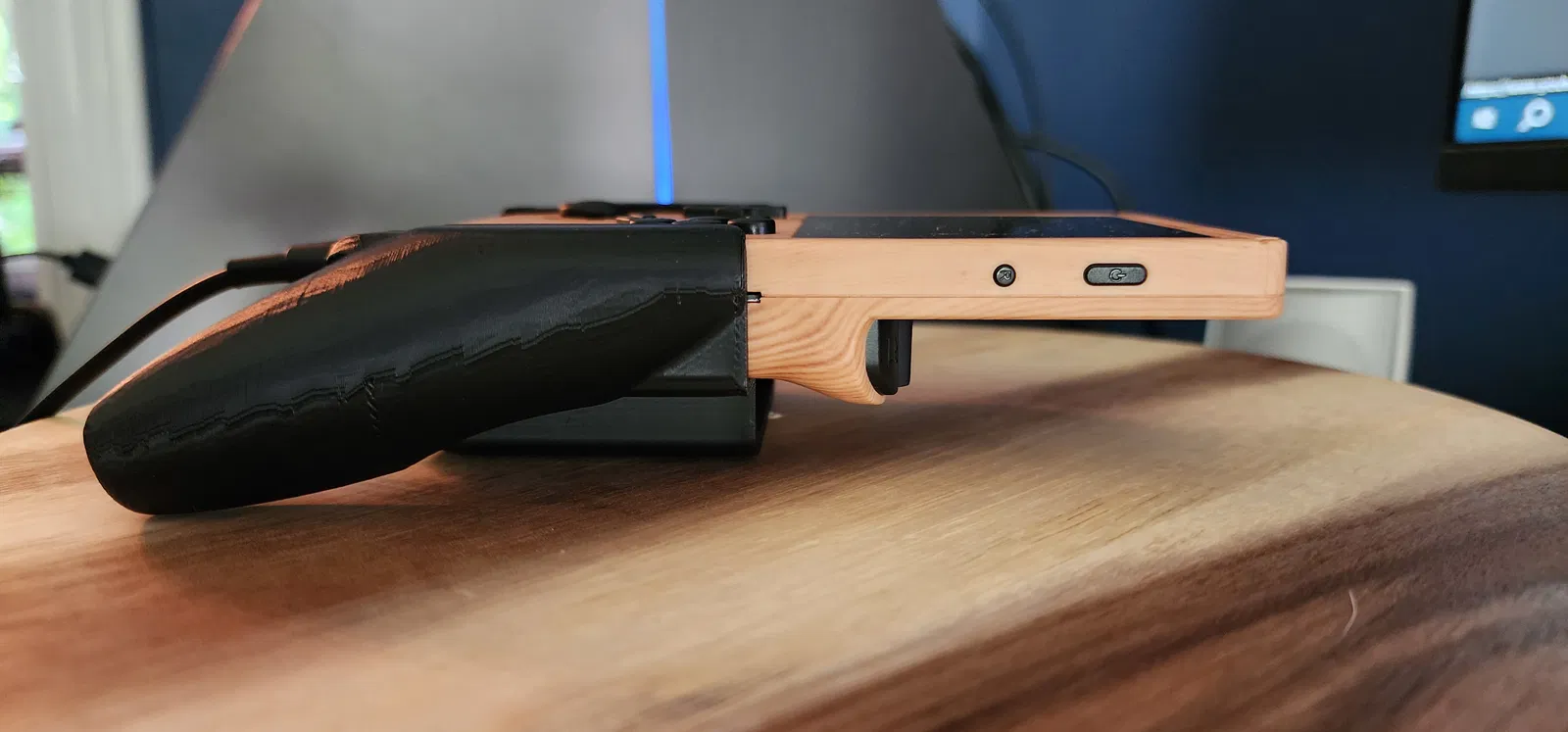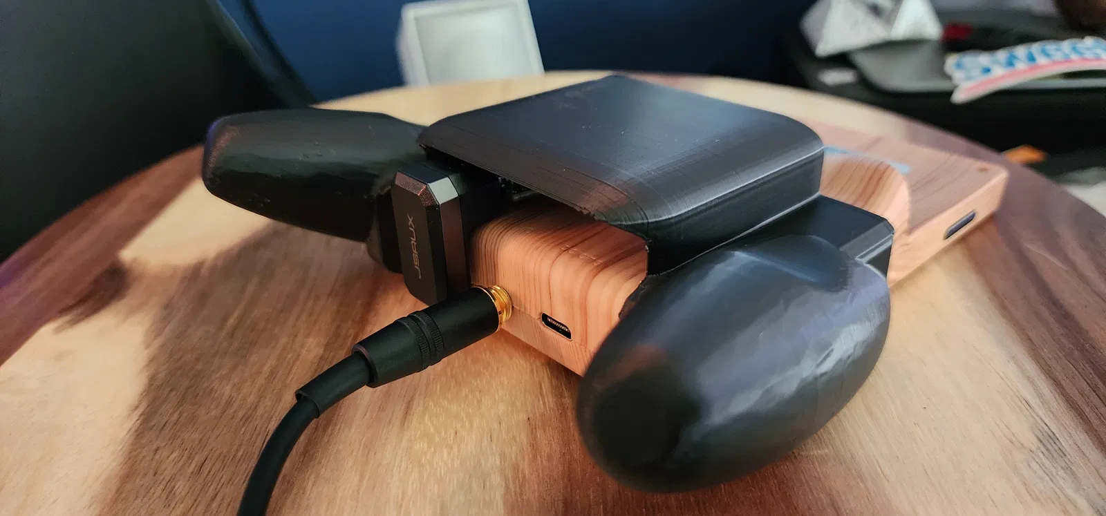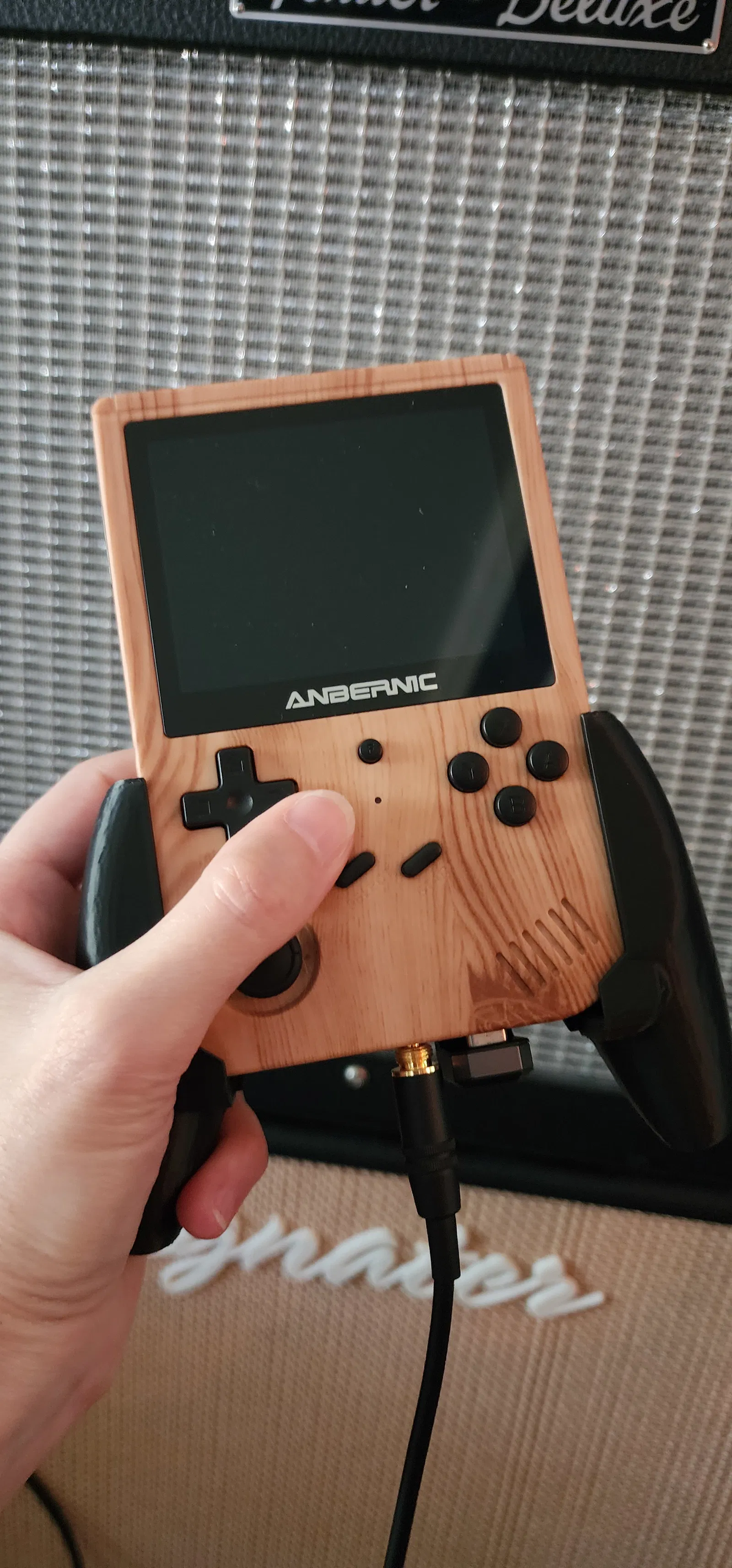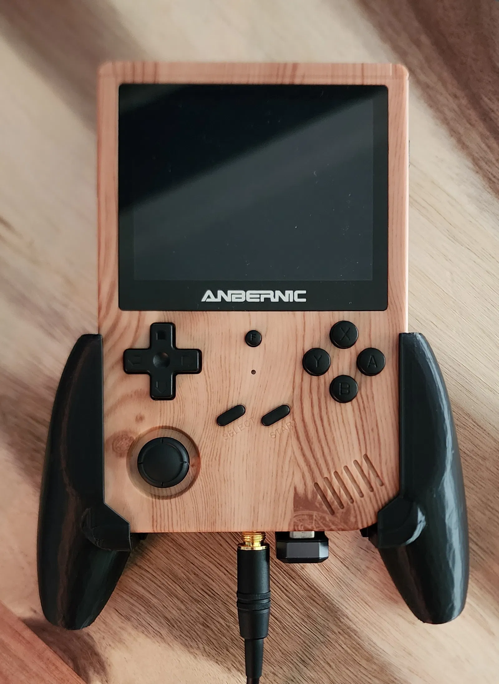 Phần lưng được thiết kế kéo dài ra để chứa một bộ điều hợp USB. Bản lưng sâu này còn thoải mái hơn bản gốc đối với tui khi cầm và giữ cân bằng chỉ với một lực nắm nhẹ, giúp giảm áp lực lên tay. Cái này rất hữu ích nếu bạn bị nhạy cảm ở tay hoặc cổ tay do chuyển động lặp đi lặp lại như tui nè. Tui không chắc bạn có giống vậy không, nhưng có thể bạn cũng sẽ thích cái grip này ngay cả khi không gắn gì vào RG351V đâu nha.
