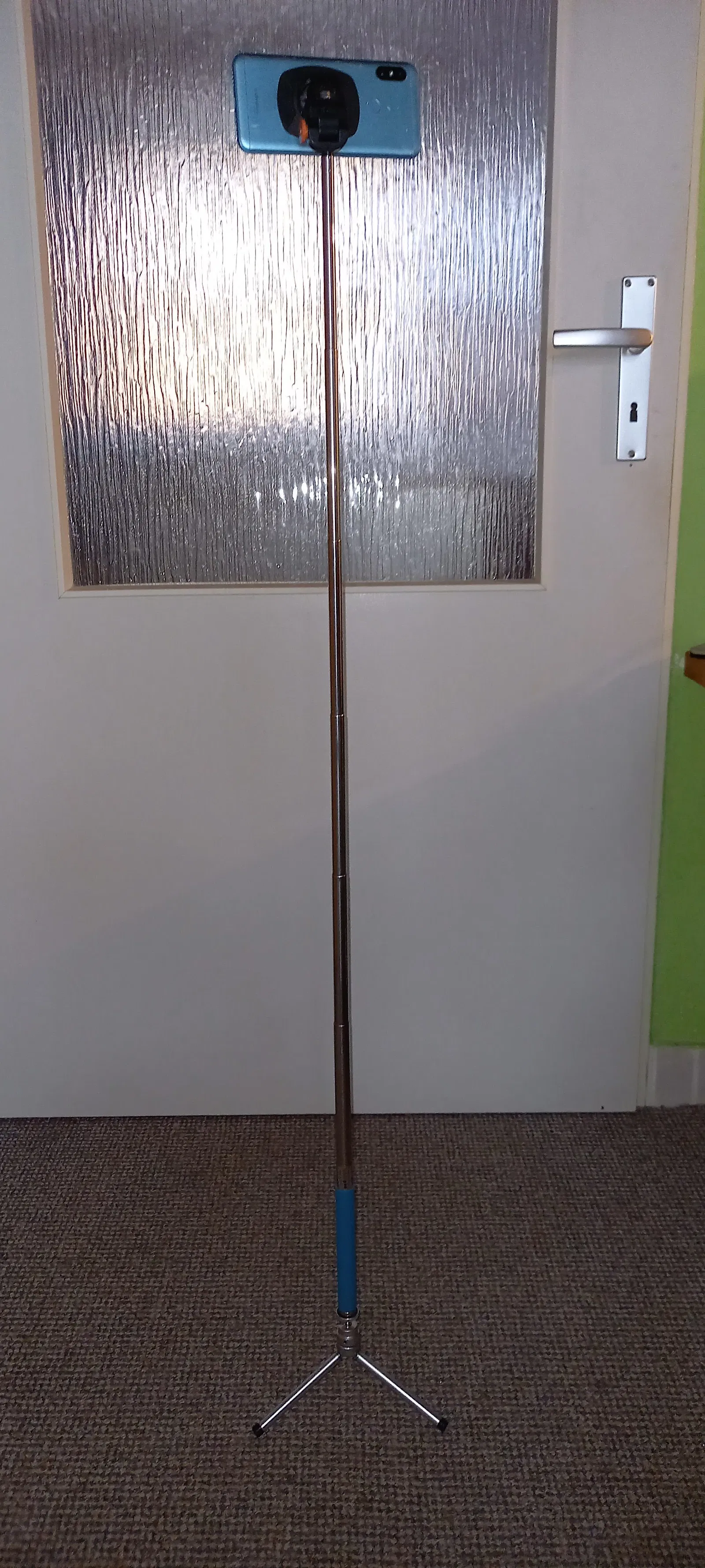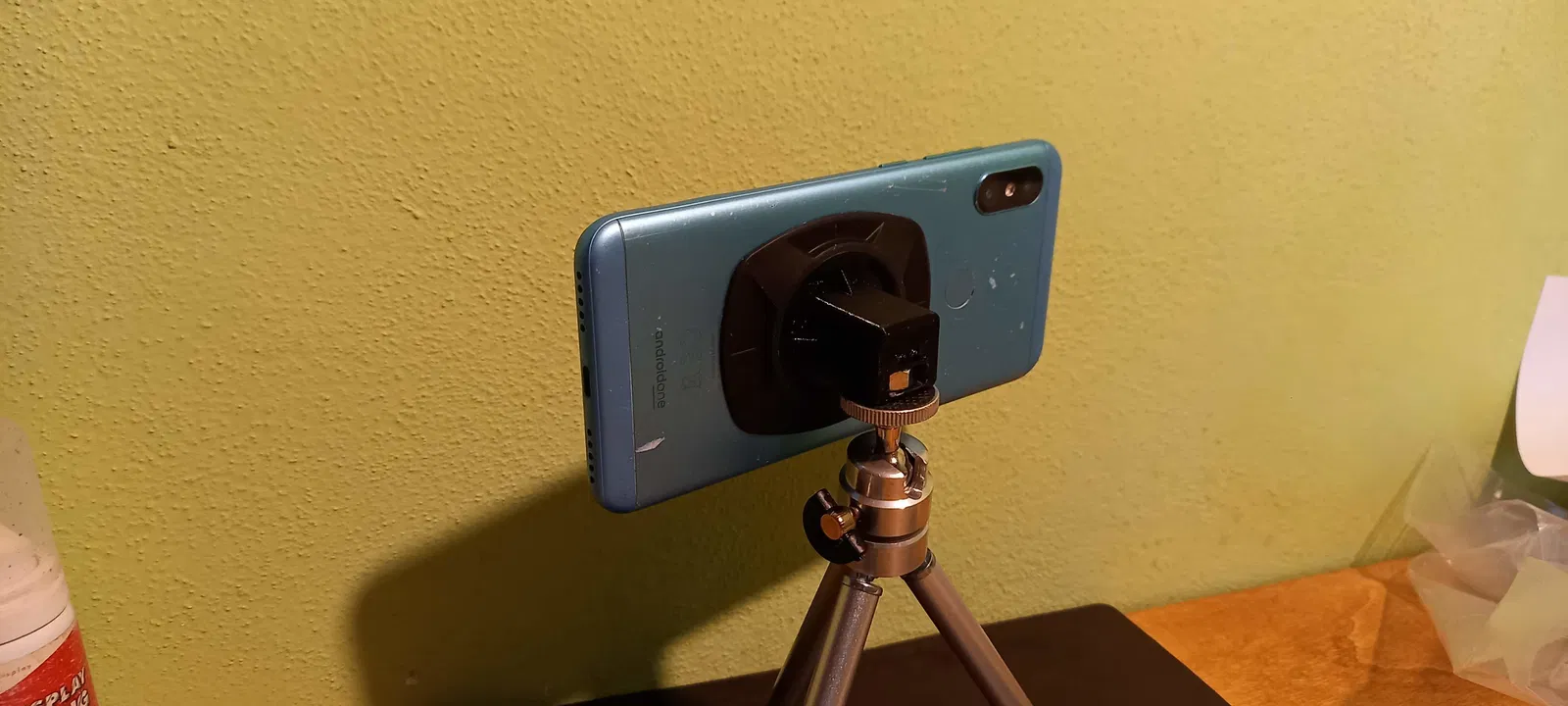 Sử dụng tripod hoặc mount khác để quay phim bằng điện thoại của bạn. Tôi đang dùng adapter này để gắn điện thoại bên ngoài cửa kính của phòng xông hơi hồng ngoại để phát phim với mount hút chân không.
