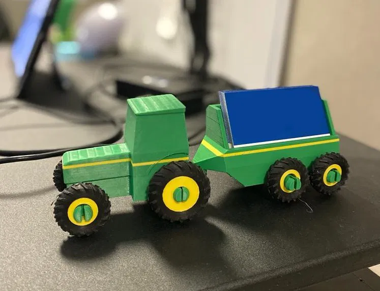 Tôi đã in chiếc máy kéo và các bánh xe từ Mẫu máy kéo trong phần “Mẫu gốc”. Bạn sẽ cần thêm 4 chiếc bánh xe nhỏ nữa cho phần rơ-moóc (giống như bánh xe phía trước của máy kéo).