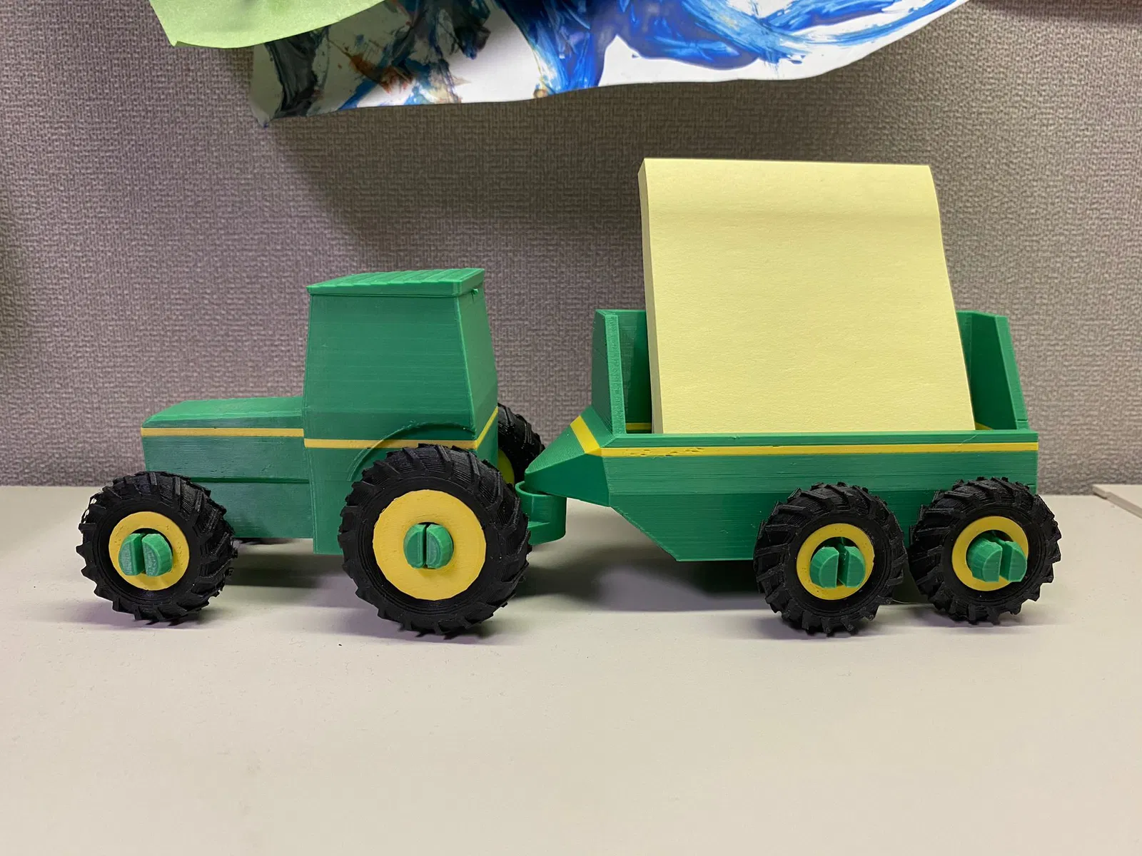 Chân đế đựng danh thiếp hình máy kéo, có kèm rơ-moóc để đựng thêm danh thiếp. Hoàn hảo cho những ai yêu thích nông nghiệp hoặc muốn có một vật trang trí bàn làm việc độc đáo. Sử dụng PLA để có kết quả tốt nhất.