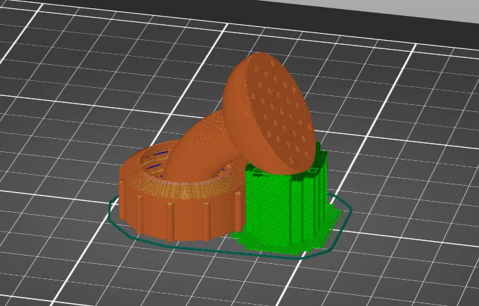 Hướng dẫn in: Sử dụng một mặt in nhẵn (để tránh bị rò rỉ). Thêm support cho phần vòi trong slicer của bạn (ví dụ: dùng tính năng paint on supports trong Prusa Slicer).