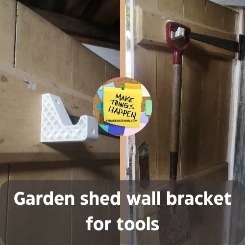 Thiết kế đơn giản để giữ các dụng cụ làm vườn lớn hơn, gắn vào cửa hoặc trực tiếp vào tường hoặc bảng shadowboard.