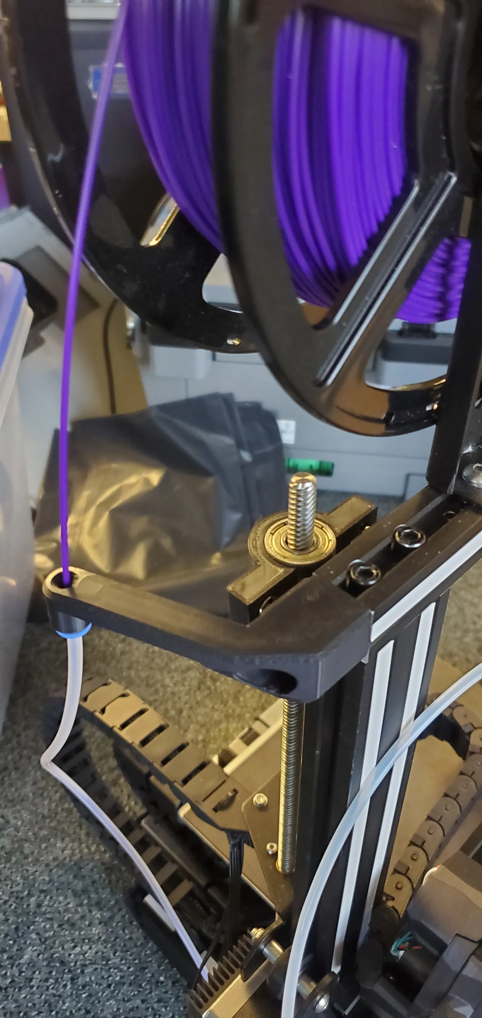 Tấm dẫn dây tóc và giá đỡ cho hệ thống Bowden ngược, dành cho cuộn dây tóc gắn trên khung trên cùng. Có 2 phiên bản cho các loại kẹp Bowden khác nhau. Kết hợp tốt với giá đỡ cảm biến hết dây tóc trục X.
