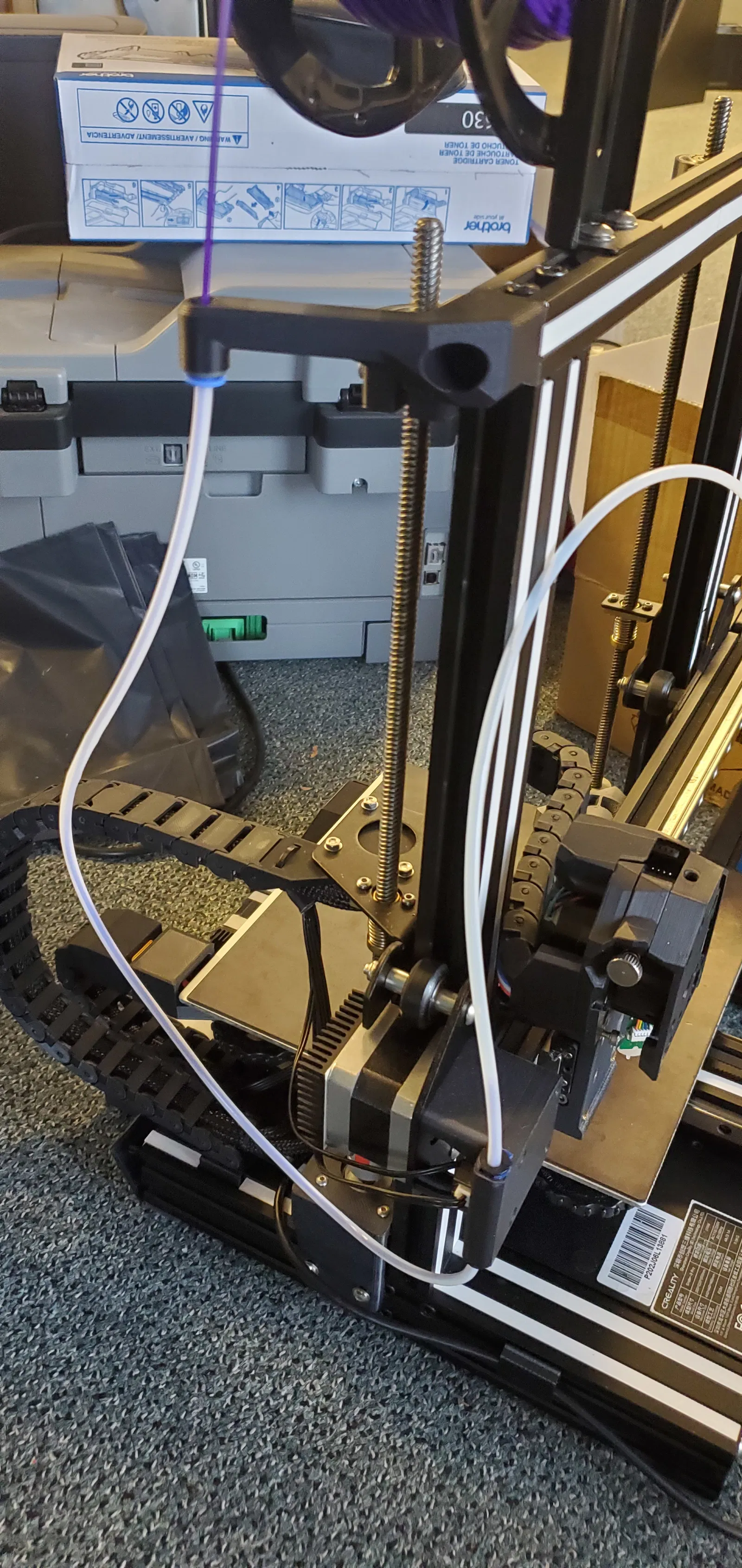 Chỉ dẫn dây tóc đơn giản và tay đỡ dùng cho hệ thống cấp dây tóc Bowden ngược, với cuộn dây tóc gắn trên thanh ray khung trên cùng của máy in Ender 3 hoặc máy tương tự. Có 2 phiên bản được cung cấp. Một phiên bản dành cho các kẹp Bowden nhựa kiểu cũ rẻ tiền (không khuyến khích), và phiên bản kia dành cho các khớp nối Bowden ECAS mới hơn. Kết hợp hoàn hảo với Giá đỡ cảm biến hết dây tóc trục X của tôi thông qua một đoạn ống PTFE ID 3mm x OD 4mm dài 650mm. Đừng dùng ống 1.75mm ID tiêu chuẩn cho cấp dây tóc Bowden ngược.