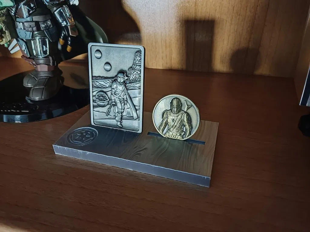 Trưng bày miếng vàng Beskar và đồng xu Mandalorian của bạn theo phong cách "vũ trụ" với đế in 3D xịn sò này. Mẫu này được chỉnh sửa từ bản gốc, dễ in bằng PLA Bạc Silk và không cần đế đỡ. Hoàn hảo cho fan Star Wars!