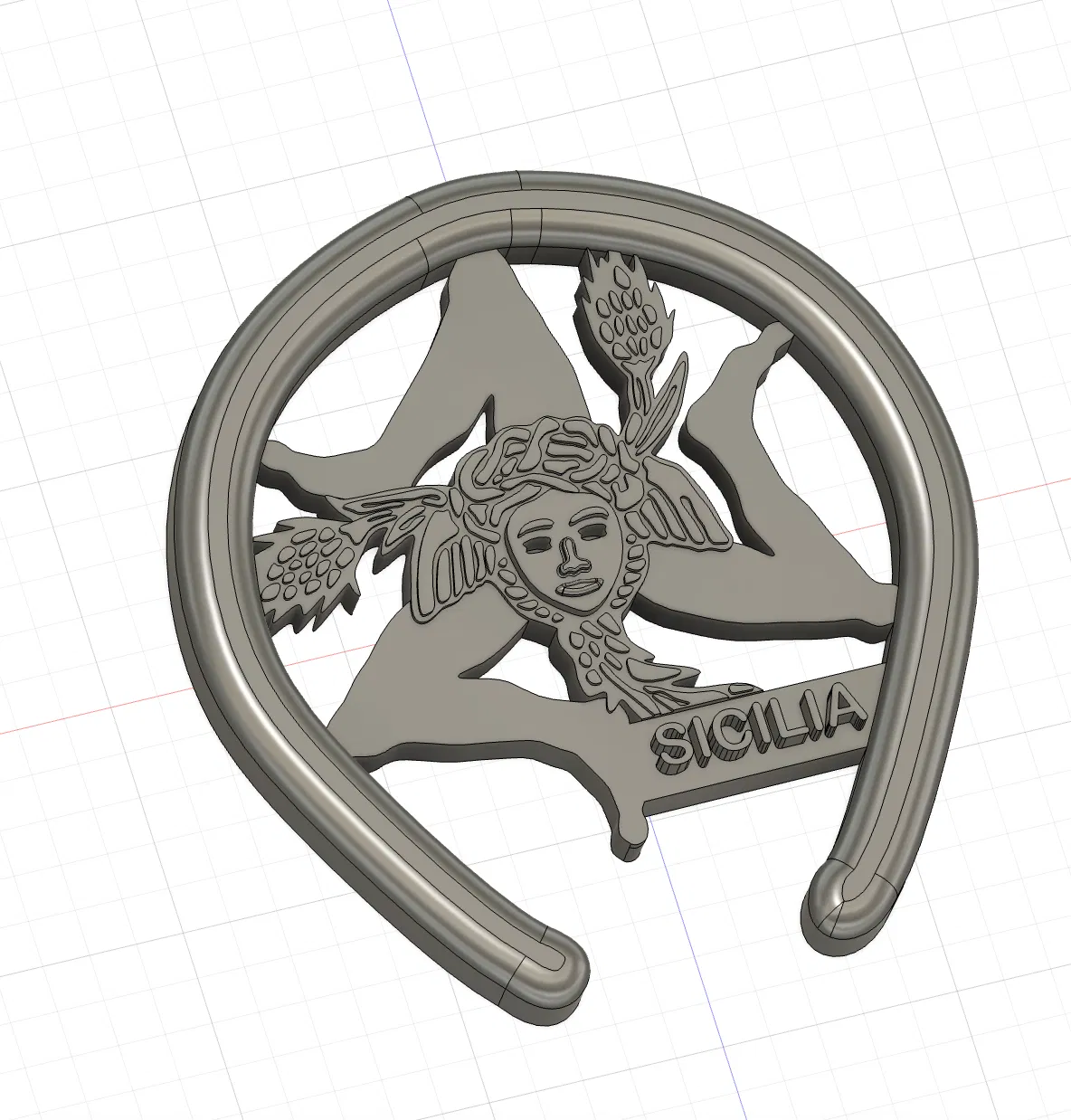 Biểu tượng Trinacria bên trong chiếc móng ngựa. Phía sau mô hình, bạn cần gắn 2 viên nam châm tròn, đường kính 6 mm và dày 3 mm.
