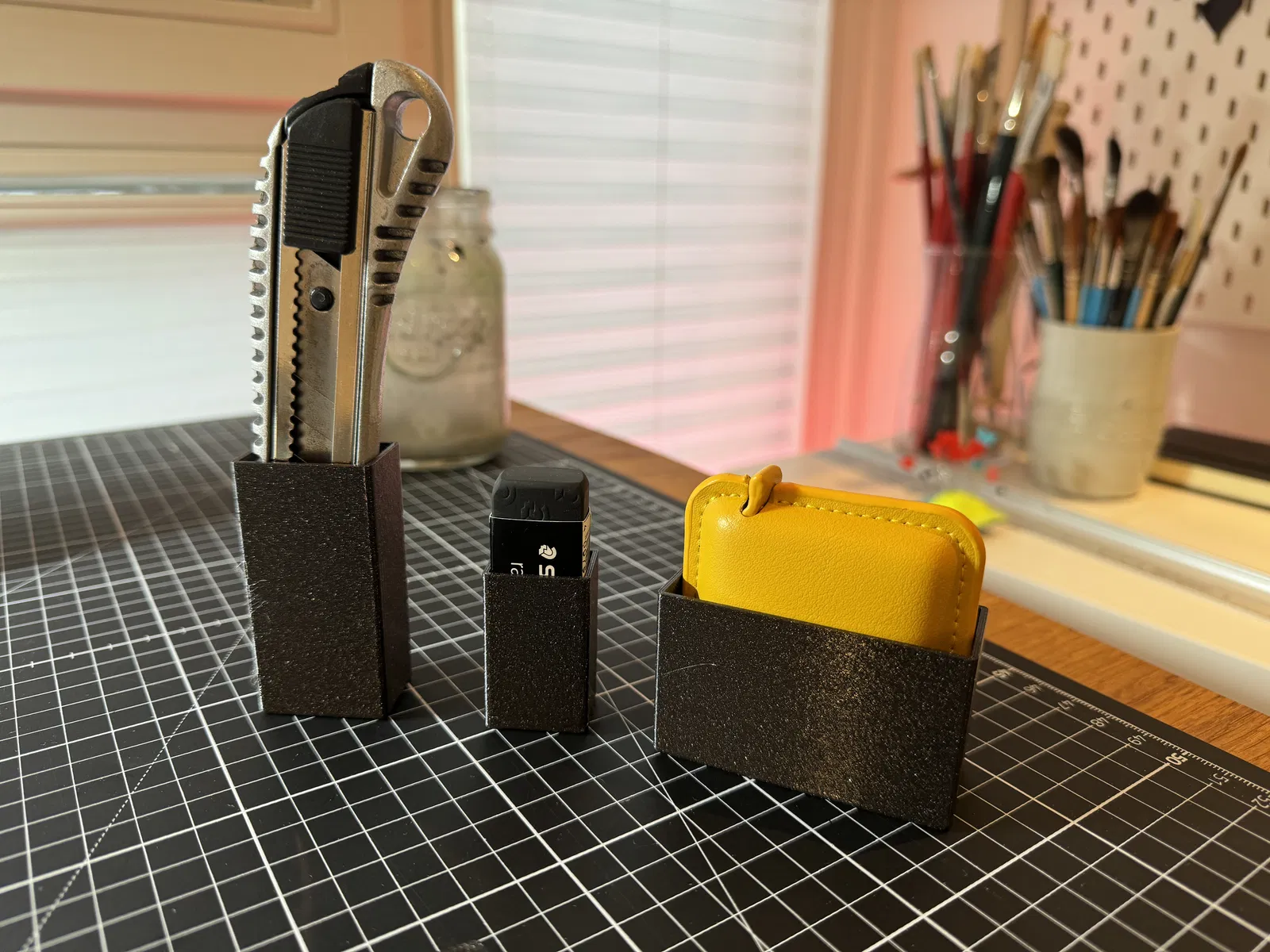 Hệ thống hộp tùy chỉnh, thiết kế cho bảng ghim IKEA Skadis bằng FreeCAD. Dễ dàng thay đổi kích thước và in ấn. Tương thích với hệ thống CSD_Salzburg, đảm bảo vừa vặn hoàn hảo.