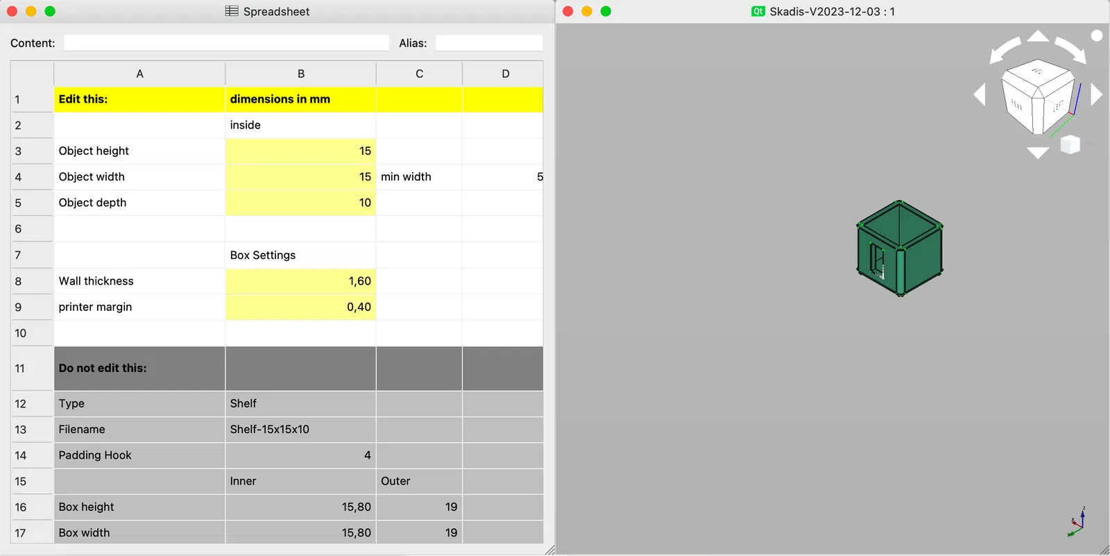 Hệ thống hộp tùy chỉnh này được phát triển dành cho bảng ghim IKEA Skadis. Với sự trợ giúp của FreeCAD, bạn có thể dễ dàng xác định và in ra kích thước hộp hoặc kệ mong muốn.