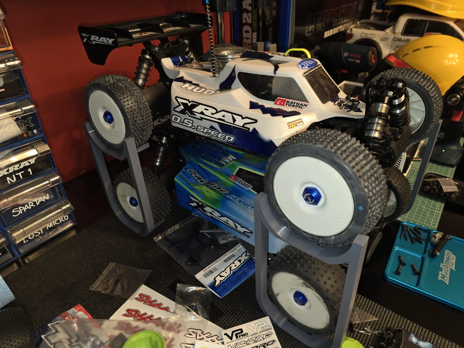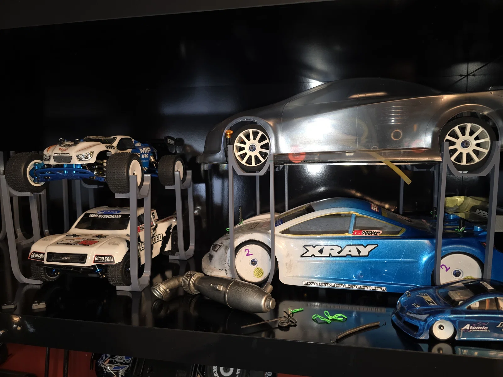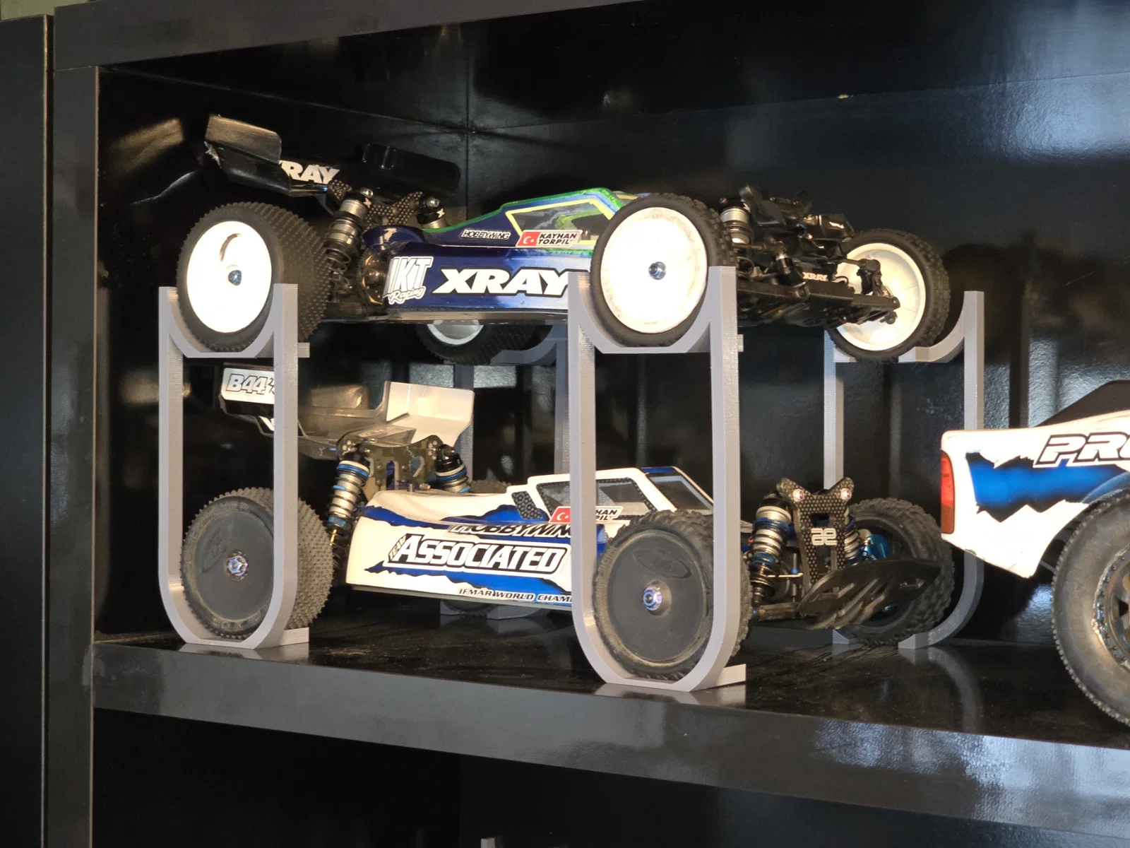 Các chân đế kích thước khác nhau để xếp hai xe RC chồng lên nhau. Cảm ơn W055A đã đóng góp. Thích hợp cho người chơi xe RC muốn tiết kiệm không gian lưu trữ.