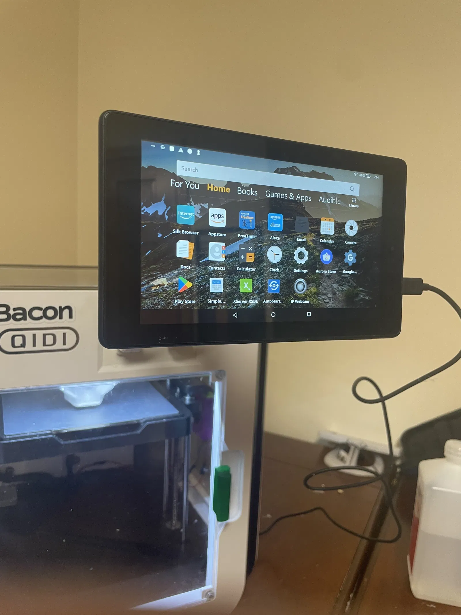 Tôi đã sử dụng máy tính bảng Amazon Fire 7, tháo ốp lưng và khoan các lỗ cho bu lông/đai ốc để cố định vào ốp lưng.