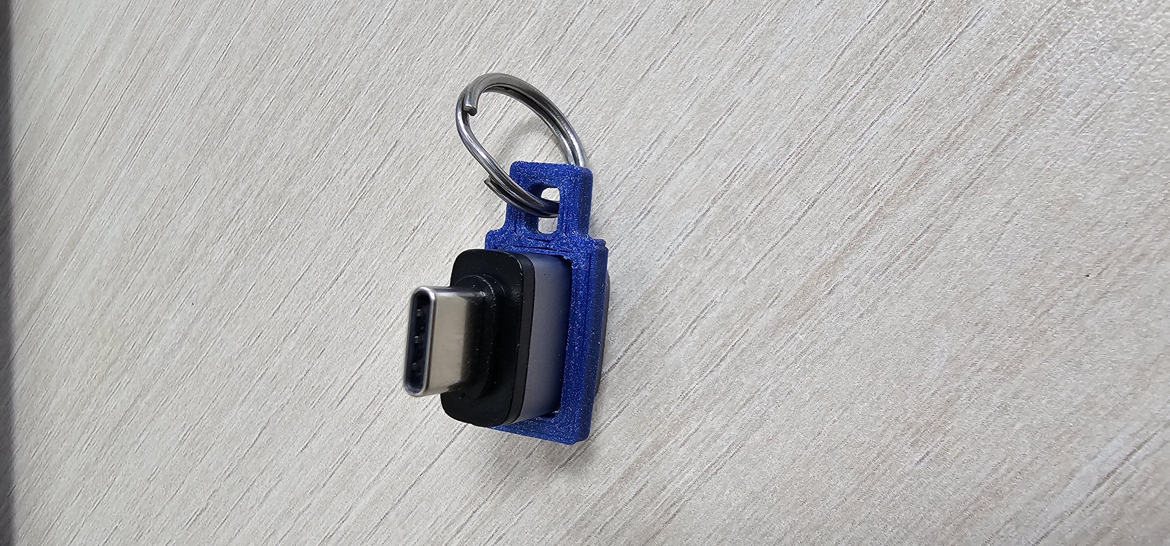Pate giữ adapter để gắn với chìa khóa. Thiết kế đơn giản bằng PLA, dành cho adapter có chiều rộng 14mm. Thích hợp làm móc khóa tiện lợi.