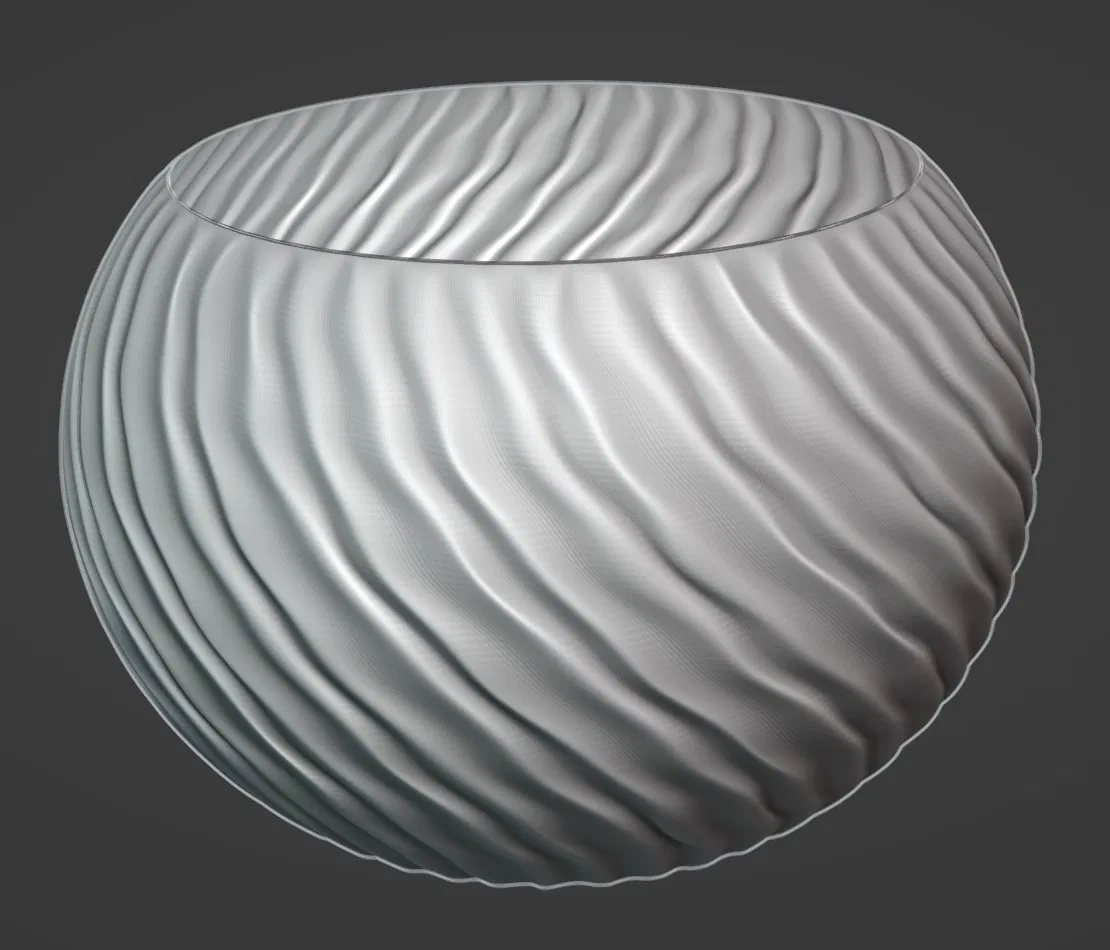 Một mẫu chậu cây với thiết kế gợn sóng độc đáo, thích hợp để trang trí nhà cửa và trồng cây cảnh. In dễ dàng bằng chế độ vase hoặc 0% infill.