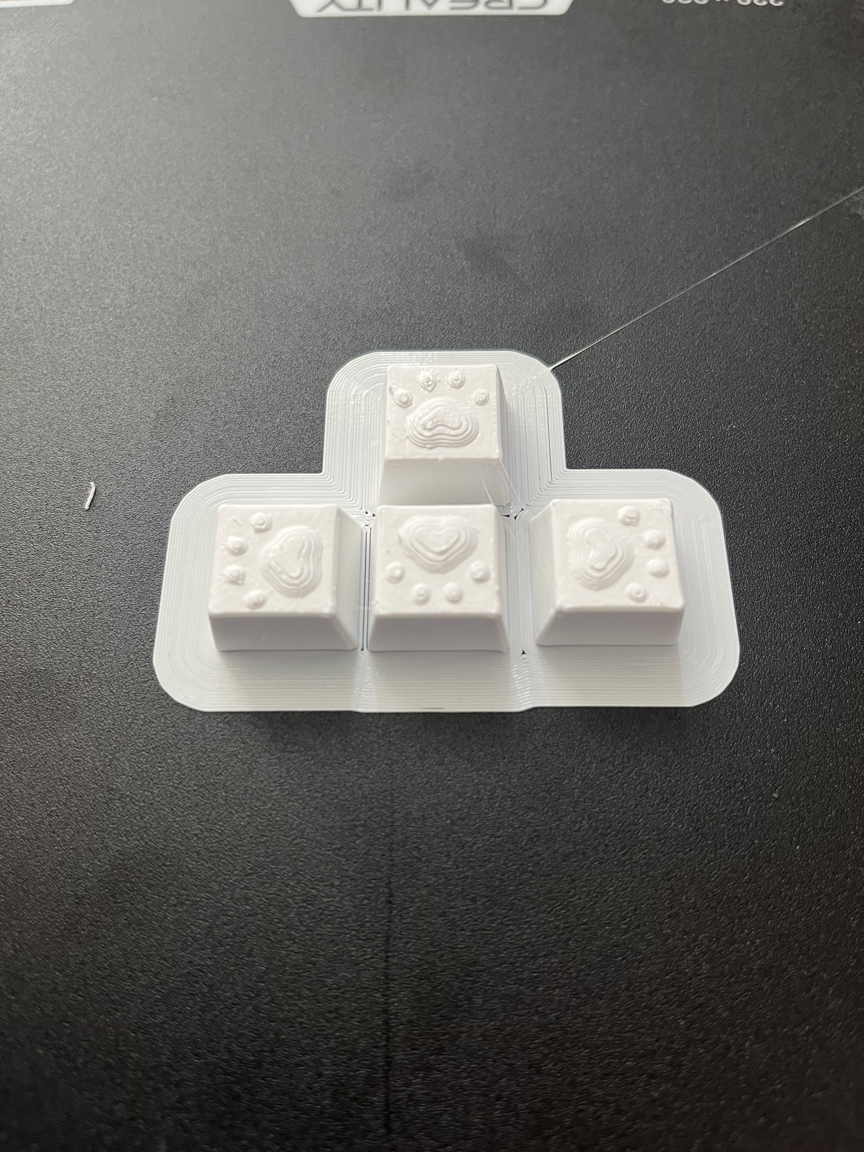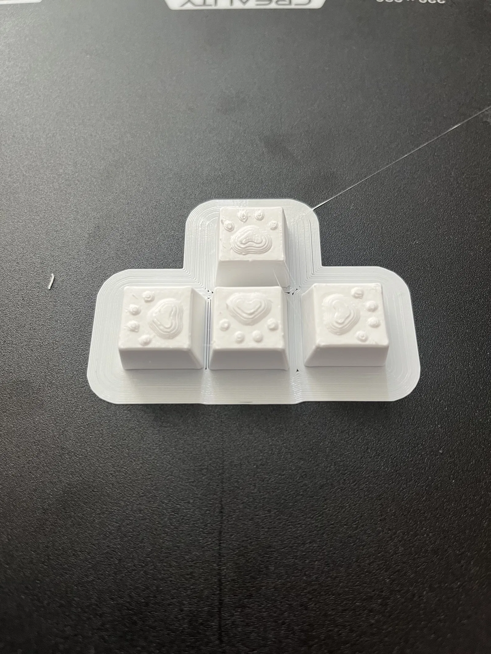 Muốn có mấy cái nút hình chân mèo cho mấy phím mũi tên nên làm cái này, đơn giản lắm mà xài ngon lành luôn. Tui có dùng PLA 1.75 với đầu phun 0.4, nhưng mà nên dùng đầu phun 0.2 cho mịn hơn nha!