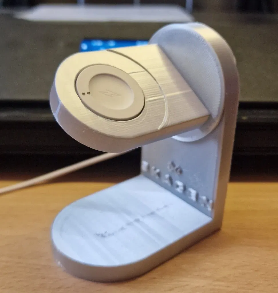 Mô hình giá đỡ đồng hồ Skagen Jorn, tích hợp đế sạc vào chân đế trưng bày. Tối ưu cho máy in Ender 5 với nhựa PLA Silk, yêu cầu không dùng supports hay rafts. Độ phân giải 0.16mm, infill 20% cho bề mặt bóng đẹp.