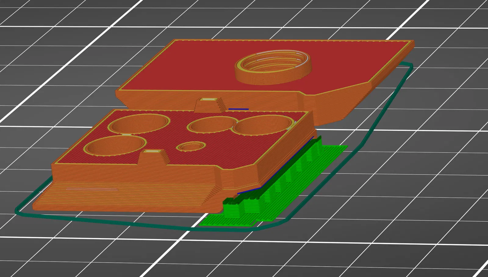 Cái này in với layer height là 0.2, trong hình slicer tao có để sẵn cái hướng in với chỗ nào cần support á, tao xài paint on supports rồi dùng smart fill brush tô cái gầm chỗ bị thừa ra.