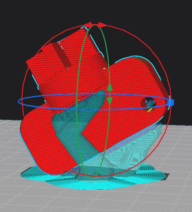 CẬP NHẬT: Tại phiên bản đầu tiên tay cầm hay bị gãy, nên tôi đã thiết kế lại cho cứng cáp hơn. Ngoài ra, giờ tôi dùng PETG-CF (có sợi carbon) thay vì PETG, và tôi in nghiêng 45° để các lớp in chạy chéo với lực tác dụng (xem ảnh chụp màn hình Cura).