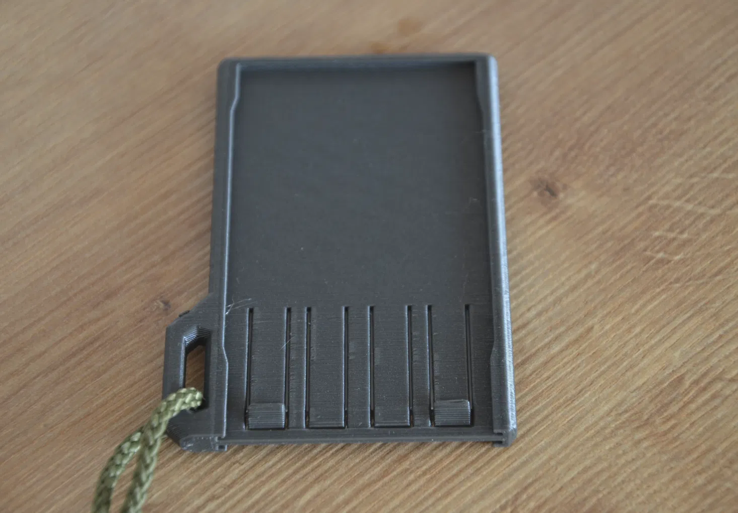Bạn có thể nhét vừa tới hai thẻ (ví dụ: một thẻ ID và một thẻ RFID) và có thể dễ dàng rút chúng ra bằng cách dùng ngón tay ấn xuống các chốt. In thẳng đứng theo hướng dẫn là được, không cần dùng support. Nên xài PETG để làm cho vỏ cứng cáp hơn, chống bị ngồi lên làm gãy đôi. Cái của mình in bằng PLA chưa bao giờ có vấn đề, nhưng cẩn thận vẫn hơn ha. Nếu bạn luồn một sợi dây qua các chốt, bạn có thể đeo vỏ này quanh cổ hoặc gắn nó vào áo khoác hay các đồ dùng khác. Cảm ơn tác giả: Mình thực sự lấy cảm hứng từ và thử làm theo ý tưởng của riêng mình.